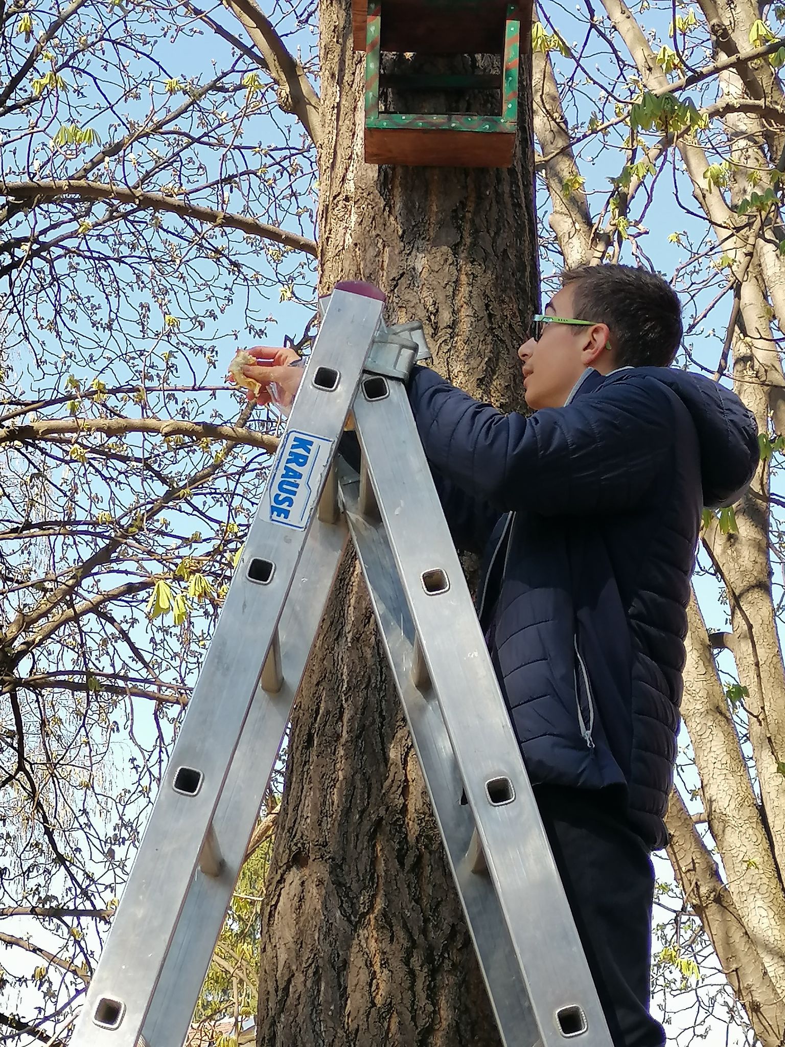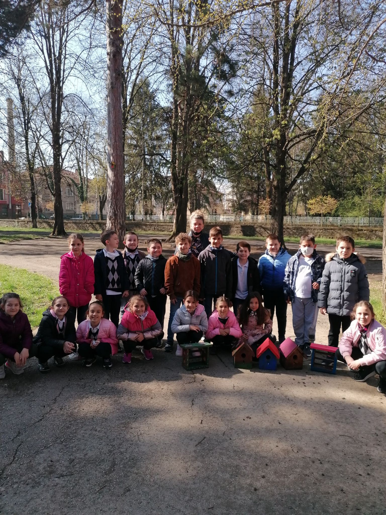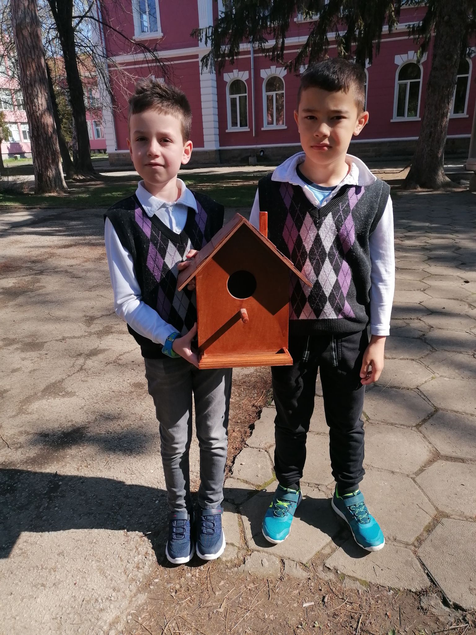 Второкласниците бяха запознати с идеята за отбелязването на този ден, с факти, свързани с опазването на околната среда, а с голямо любопитство научиха повече за различните видове птици, мястото им на обитание и хранене. За да бъде Денят на Земята още по-запомнящ се малчуганите изработиха и украсиха три къщички и две хранилки за птици. С една къщичка в благородната кауза се включиха и децата от 1 „в“ клас. А учениците от клуб „Химия за всеки“, с преподавател Ирена Кръстева, помогнаха на по-малките ученици като поставиха новите птичи домове на дърветата в двора на училището. С необходимите инструменти и със съвети в акцията се включиха и общите работници в школото – чичо Иван и чичо Стефан.