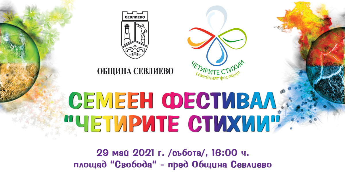 Съботният ден – 29 май, ще премине под знака на четирите стихии – въздух, огън, земя и вода. Тогава, от 16:00 до 21:00 часа на площад „Свобода“, по случай 1 юни, Община Севлиево кани малки и големи на семейния фестивал „Четирите стихии“.