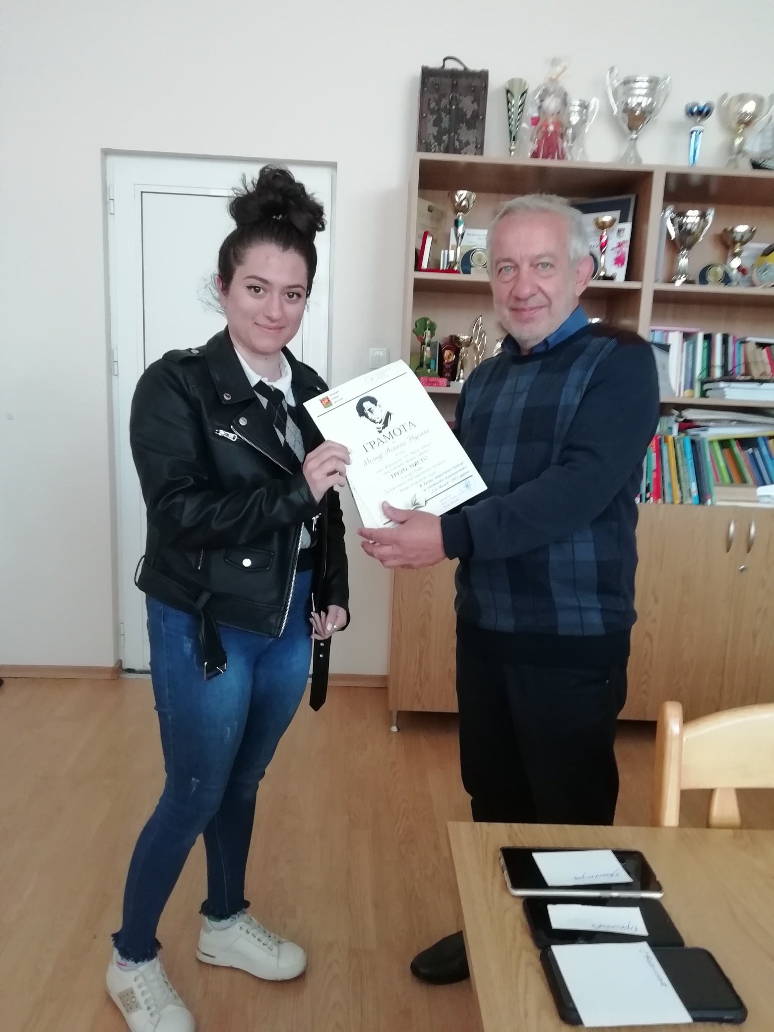 Поради пандемичната обстановка наградите бяха изпратени по пощата и връчени от директора на СУ „Васил Левски“ – Тома Томев.