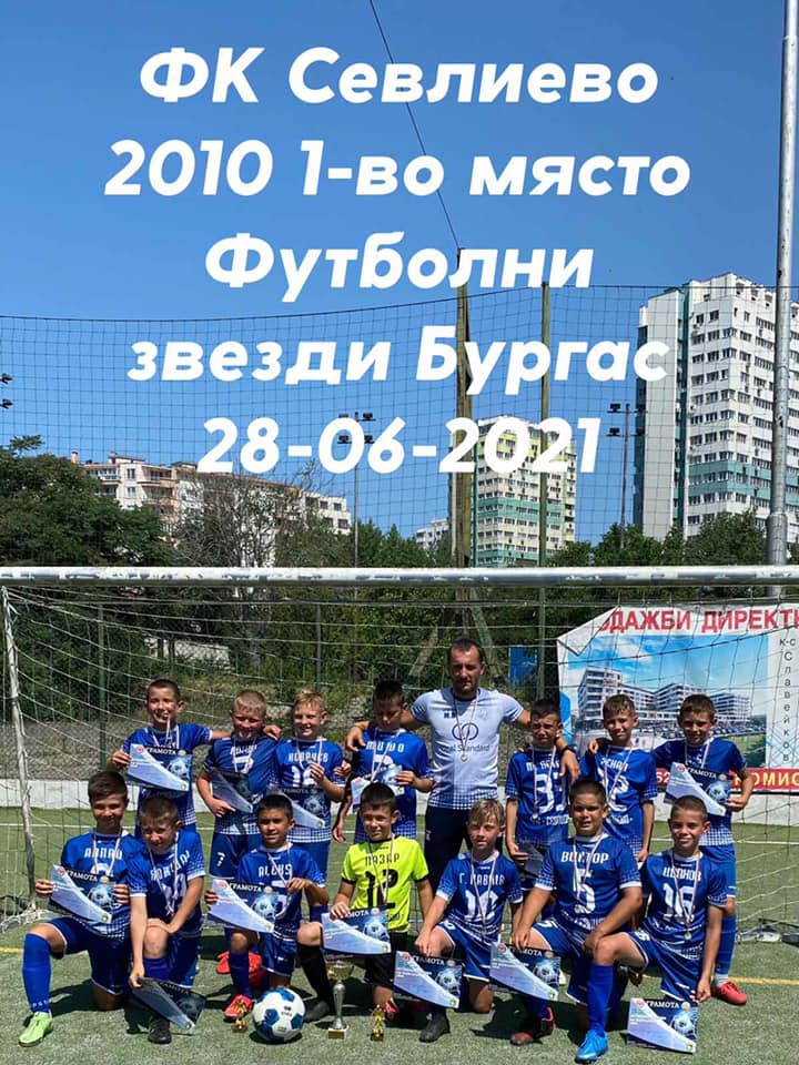 Футболен клуб Севлиево стана шампион на България при състезателите, родени през 2010 г. Те играха в една група с отборите на ФК “Нефтохимик”, ФК “Несебър” и ФК “Звездичка 2010”. На полуфинала младите севлиевци, с треньор Милен Ванков, завършиха наравно 1:1 с ФК „Рилци“- Добрич, но нашите деца бяха по-точни при дузпите и се класираха на финал! Там се срещнаха с отбора на „Нефтохимик“- Бургас и го победиха с 1:0. Голмайстор бе Димитър Стефанов. Това донесе на отбора първото място и купата! Донесе и две индивидуални награди на двама състезатели от ФК „Севлиево“: за най-добър защитникбе отличен Константин Петков, а за най-добър халф Димитър Стефанов.