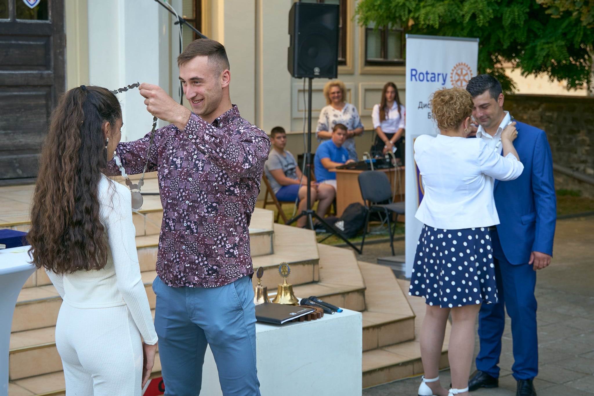 Новите президенти закриха събитието с традиционния камбанен звън и така Михаил Йонков и Ренета Николова завършиха първата официална среща като новите лидери на ротарианските клубове в града.