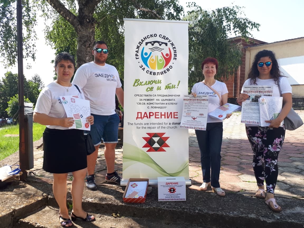 Екипът на сдружението поде благородната инициатива на 27 юни, когато на площада в селото бе поставена дарителска кутия. Така всеки, който се чувстваше съпричастен с каузата – подмяна на улуци и счупени стъкла под купола на храма, можеше да пусне своята лепта в кутията. Всеки дарител получаваше модел на българска шевица и цветни стикери, с които да я „нарисува“.