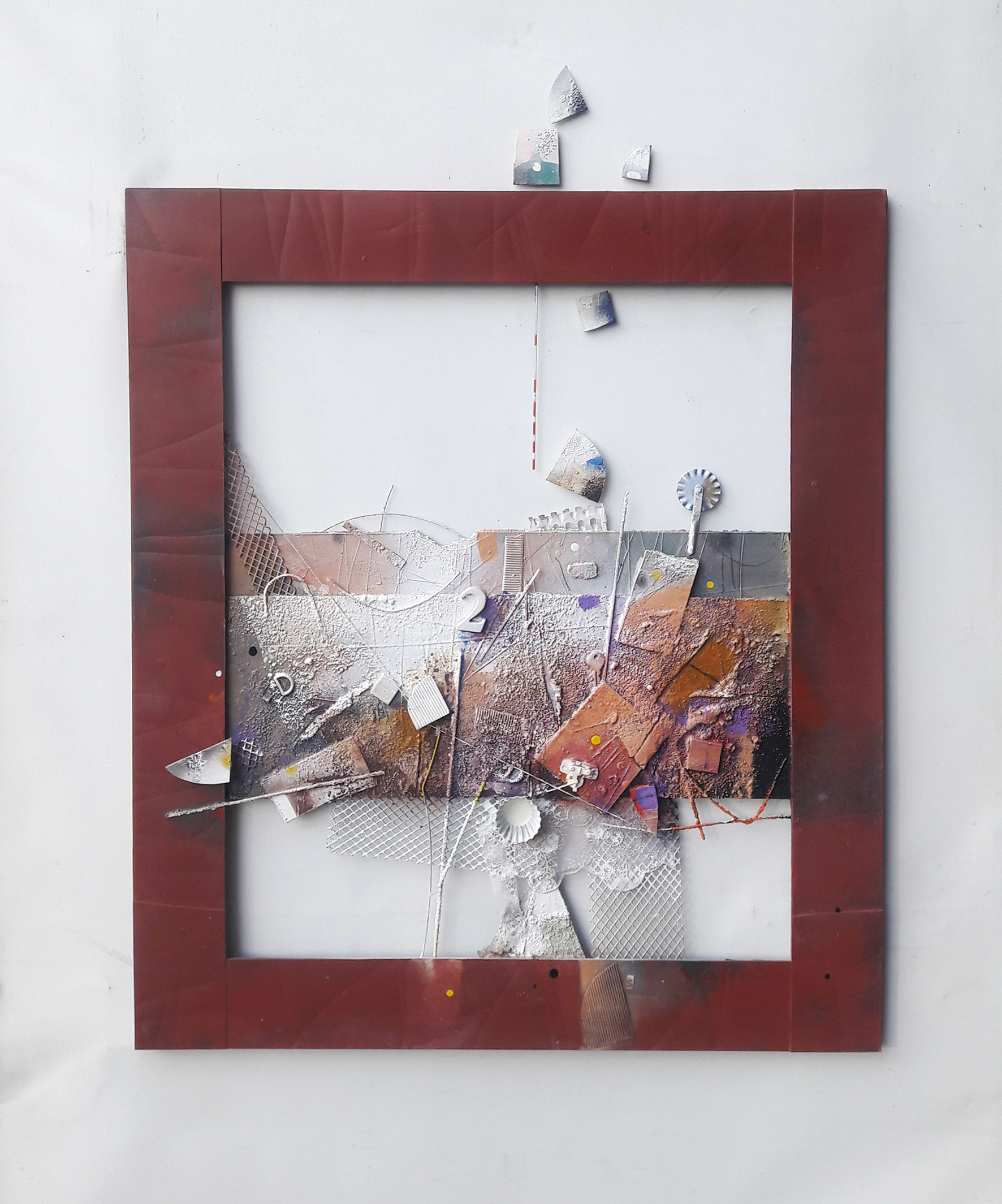 Освен с техническо майсторство, Васил Тенев подхожда и с изключителен естетически усет при изграждането на композициите си. Неговите пана/колажи са изградени с много конструктивност, целенасочено изведени извън двуизмерното пространство на платното. Симетрични и балансирани, те подсказват за една творческа мисъл, която е отвъд хаотичността на ирационалното творчество. Творбите се усещат цялостно, елементите са обединени в общо звучене. Получава се едно схематичното представяне на реалността в три измерения, предадено с помощта на парченца от самата нея. Васил Тенев си играе с асоциативна ни способност да разчитаме света, чрез препратки от частното към общото и от частицата към цялото.