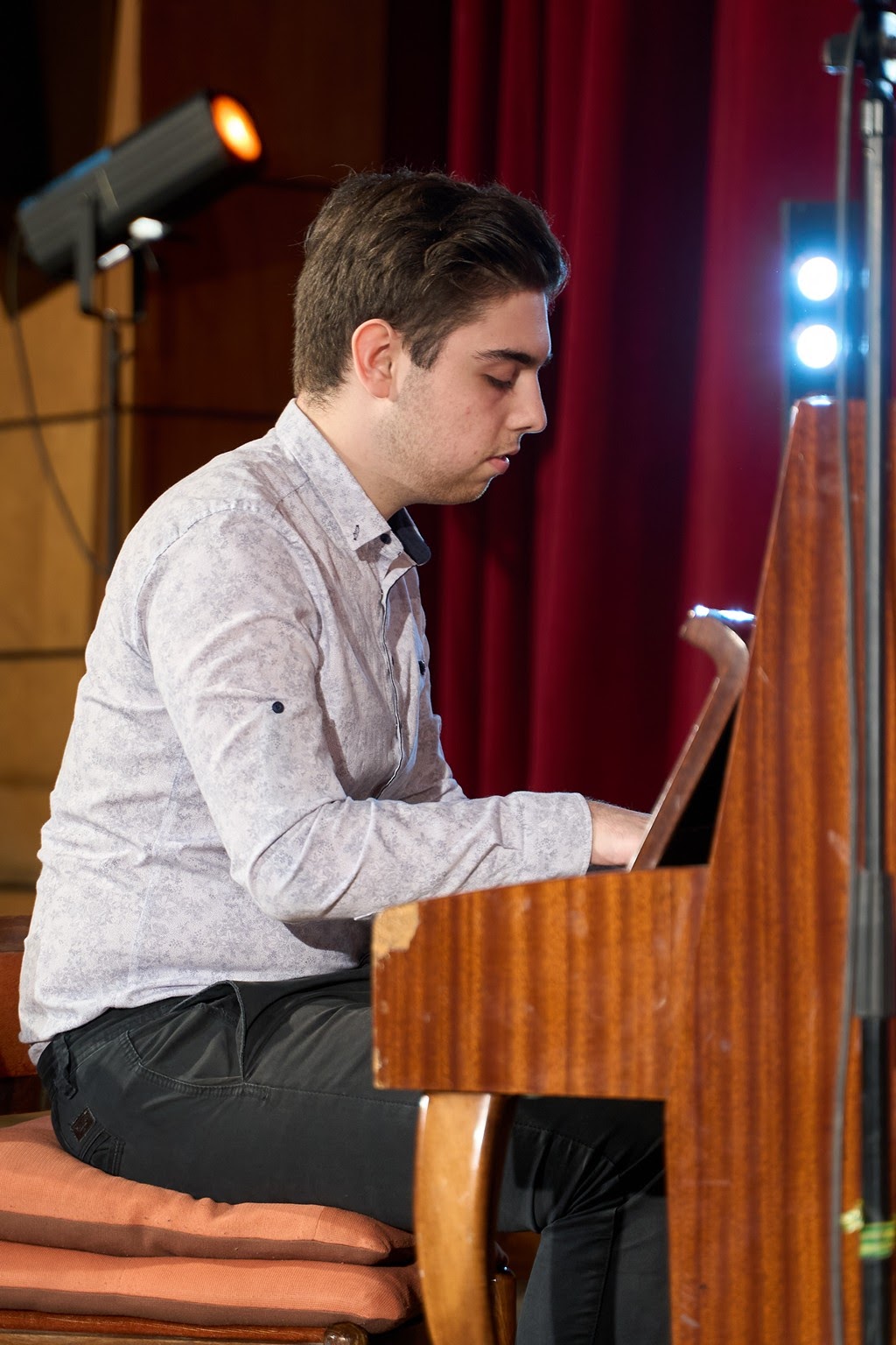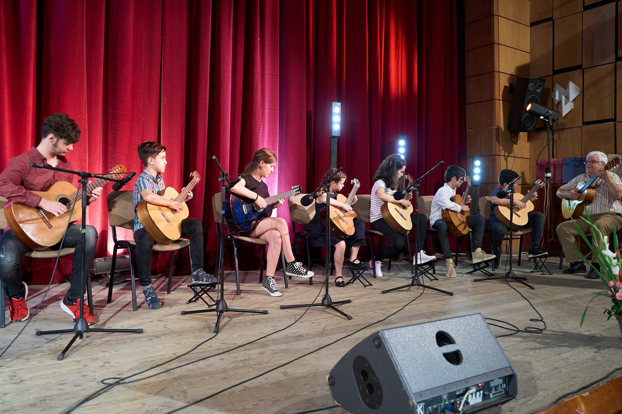 С „Лунна соната” на Бетховен и „Ръченица” на Добри Христов концерта откри талантливата Стефани Тотева, възпитаничка на школата по пиано, с художествен ръководител Иглика Грънчарова. Песните „Запяла ми е черешка”, „Седнала е Гинка” и „Шарена гайда” изпълниха най-малките певци от школата по народно пеене, с преподавател Цветина Маринова. Китаристите Калоян Костов и Дамян Иванов изсвириха „Валс за две китари” от Фернандо Карули, а „Меланхолия” от Никола Кост представи Мартин Казанджиев. Преподавателят по китара и тамбура Цветан Радков и възпитаниците му: Велизара Костова, София Цонкова, Пагане Антонова, Калоян Костов, Дамян Иванов, Владимир Николов, Александър Василев и Мартин Казанджиев поздравиха публиката с две изпълнения – „Домино” от Леополд Ферари и Валс „Венецуела”. Чудесна бе блок програмата на класа по акордеон, тамбура и синтезатор, с преподавател Ценка Ганчева. „Кукувичка” и „Сборенка” на синтезатора изсвири Нелина Александрова, а „Тиролски валс” представи Рая Георгиева. Чешки народен танц изпълни на акордеон Христо Драганов. „Тико-тико” и „Сватбата на феите” изсвири на синтезатор Венцислав Йонков, а с „Право хоро” се представи Тихомир Петров. Вълнуваща мелодия, с романтика, страст и хармония – „Валс” на Фредерик Шопен, на пианото изпълни Силвия Петкова. Изненадващо, минути преди началото на концерта, тазгодишният абитуриент на класа по пиано Калоян Тодоров се появи зад кулисите, за да се включи в програмата и поздрави публиката с парчето „Демони” на групата Имеджим Драгънс. Участието му, макар че бе извън сценария, приповдигна градуса на настроението и обра овациите на присъстващите. Чувствено бе и изпълнението на патетичната соната „Рондо” на Бетховен от пианистката Лилия Апостолова.
