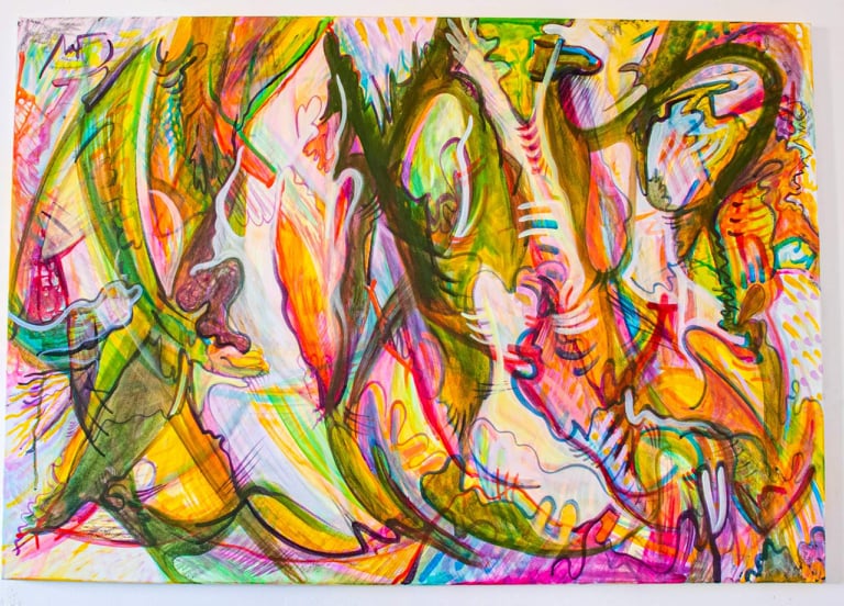 Всички тези занимания и умения създават неговият художествен език. Знаем, че в творчеството няма езикови бариери, затова днес общуването е леко и непринудено, именно защото абстракцията като изразно средство е една от най-чистите форми на общуване. Заглавието на изложбата ни води към мястото на срещата ни. Пресичането е повод за общуване и основен мотив в картините, които виждаме днес. С цвят и линия авторът дава израз на емоциите и опита си, на нещата, които го вълнуват. Акцентът е точката, там, където се пресичат вярванията му, а някои от заглавията на картините ни водят към конкретни моменти, вероятно превърнали се в пресечни точки между фантазия и реалност. Тези моменти много често са израз на детското в човека, независимо от възрастта му. За възрастният, запазил детето в себе си , творчеството е необходимо точно както играта за децата. Цветовете и полагането на боята също ни носят информация за лекотата и удоволствието, с които работи Людо и неговото категорично положително отношение към живота.