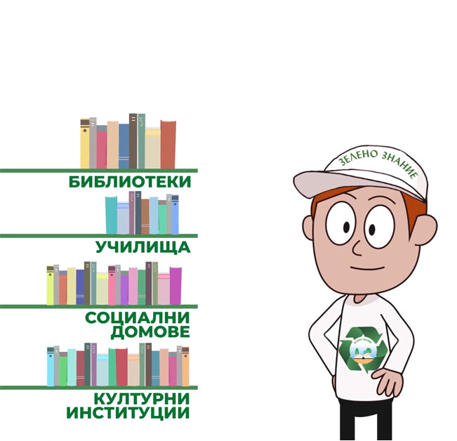 Книгите, които досега някои безразборно изхвърляха по контейнерите, могат да получат нов живот, или да бъдат рециклирани. Това става благодарение на инициативата „Зелено знание“. Основната цел на този проект е „предотвратяване на образуването на битови отпадъци от домакинствата, подготовка за повторна употреба или за рециклиране и повишаване на осведомеността и общественото самосъзнание за спазване на йерархията за управление на битовите отпадъци чрез участието на гражданите в разделно събиране и повторна употреба на книги.“