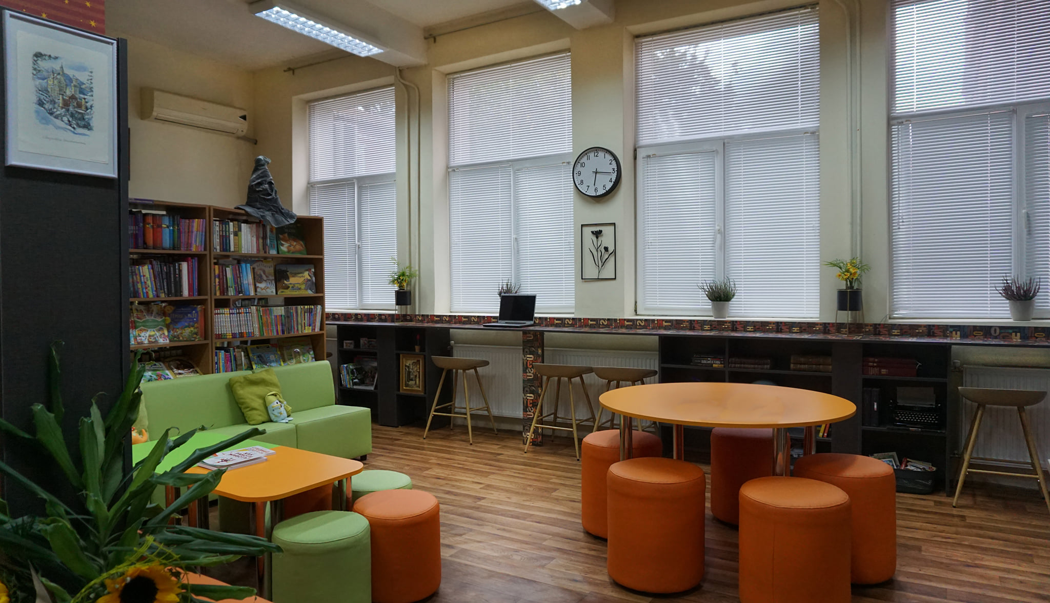 Възползвахме се от контактите с интериорен дизайнер и проекта лека, полека се избистри. Кардинално разместихме рафтовете с книги, за да дадем повече пространство и да вкараме светлината в помещението. Централното място в библиотеката, което до този момент не се използваше ефективно и бяхме принудени просто да обикаляме се превърна в притегателна точка за по-малките ученици – с удобно разположените маса, дивани и книгите от детския отдел в съседство.
