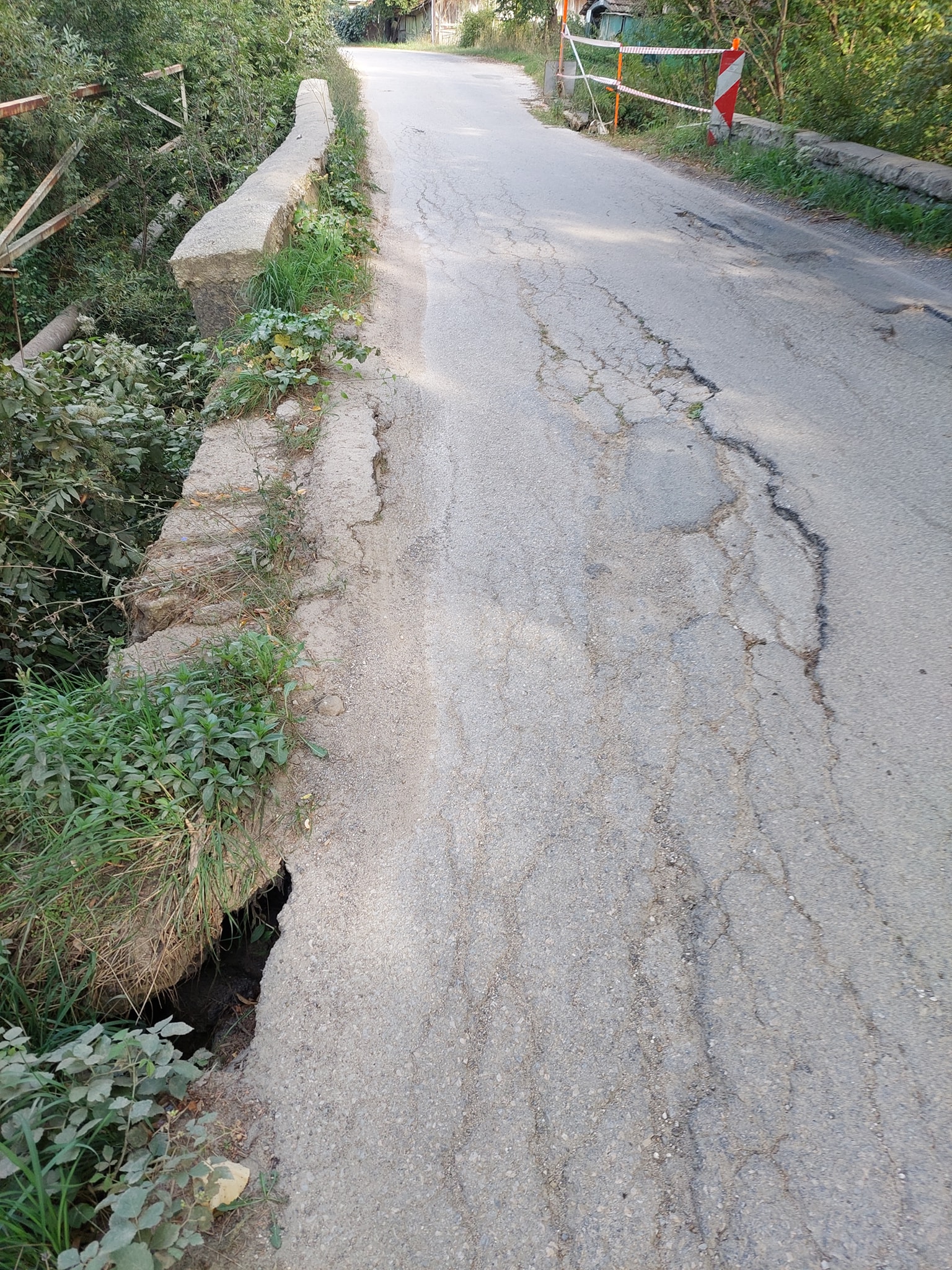 “Пътното съоръжение над р.Стара река при км7+423 на път III-6072 кв. Острец – Кръвеник – Стоките-Батошево-/Горна Росица-Гъбене/ е в аварийно състояние. Насипът над десния устой над моста е пропаднал, включително част от платното за движение, заедно с каменния парапет на съоръжението. Предвид ситуацията габаритът на пътя е стеснен-по-малко от 3 метра.
