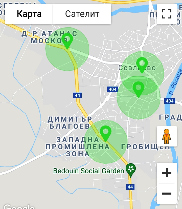 Информацията е достъпна на: https://senstate.com/map/ и визуализирана на монитор на входа на сградата на Общината.