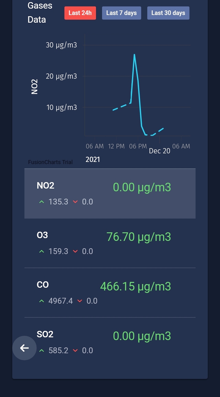 Всички станцииии подават информация за: температура, влажност, атмосферно налягане, прахови частици – PM1, PM2.5, PM4.0 и PM10.0. Станция № 1, допълнително показва – Серен диоксид (SO2), Азотният диоксид (NO2), Въглероден оксид (CO) и Озон (O3).