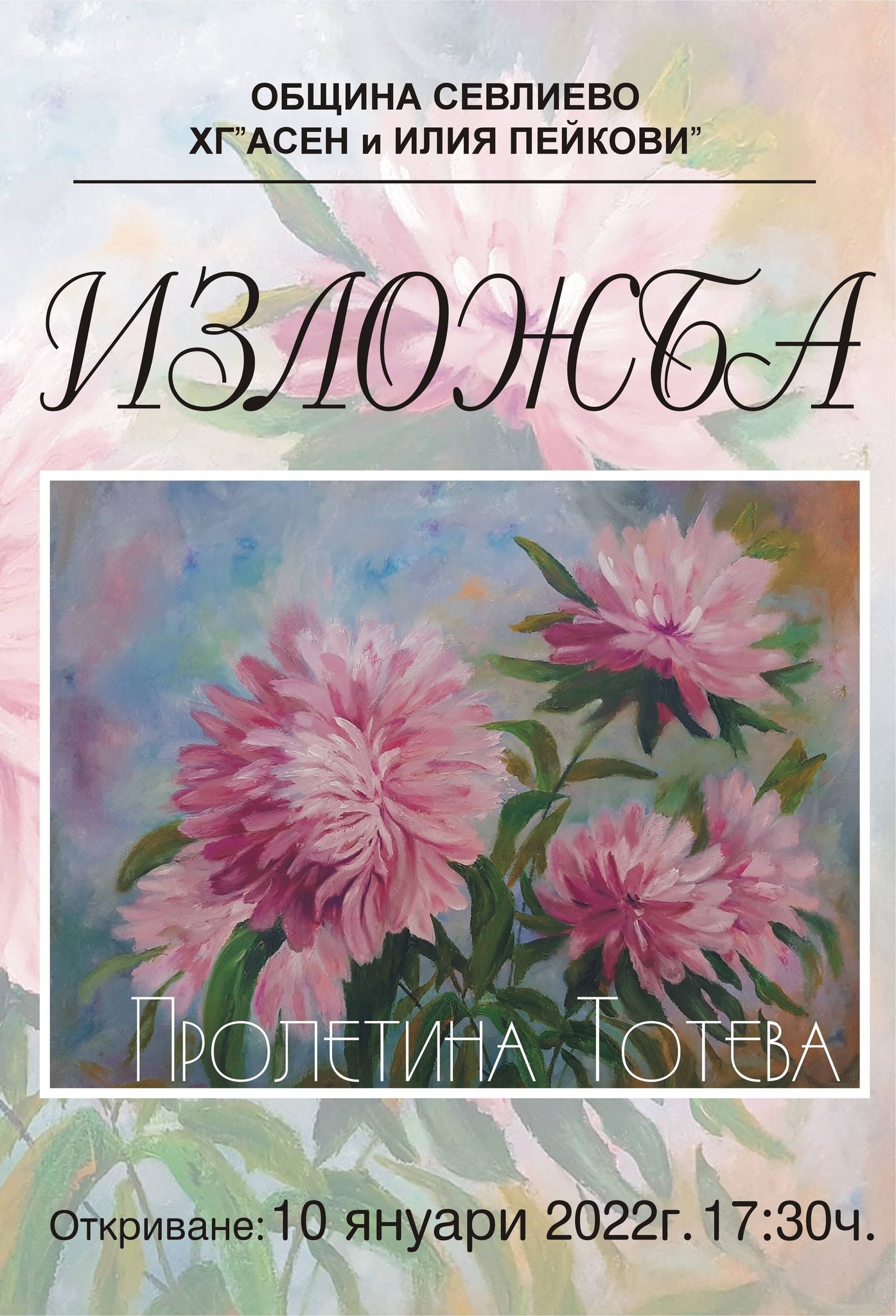 Тази вечер, в 17:30 часа, Градската художествена галерия „Асен и Илия Пейкови“ ще бъде открита първата за новата 2022 година изложба. Платната, които ще бъдат показани, са дело на художничката Пролетина Тотева, която продължава да сбъдва своята детска мечта. Ученичка е на големия график – габровския художник Божидар Ковачев и Мария Панчева. Зад гърба си художничката има реализирана една изложба, и втора, в по-голям мащаб.