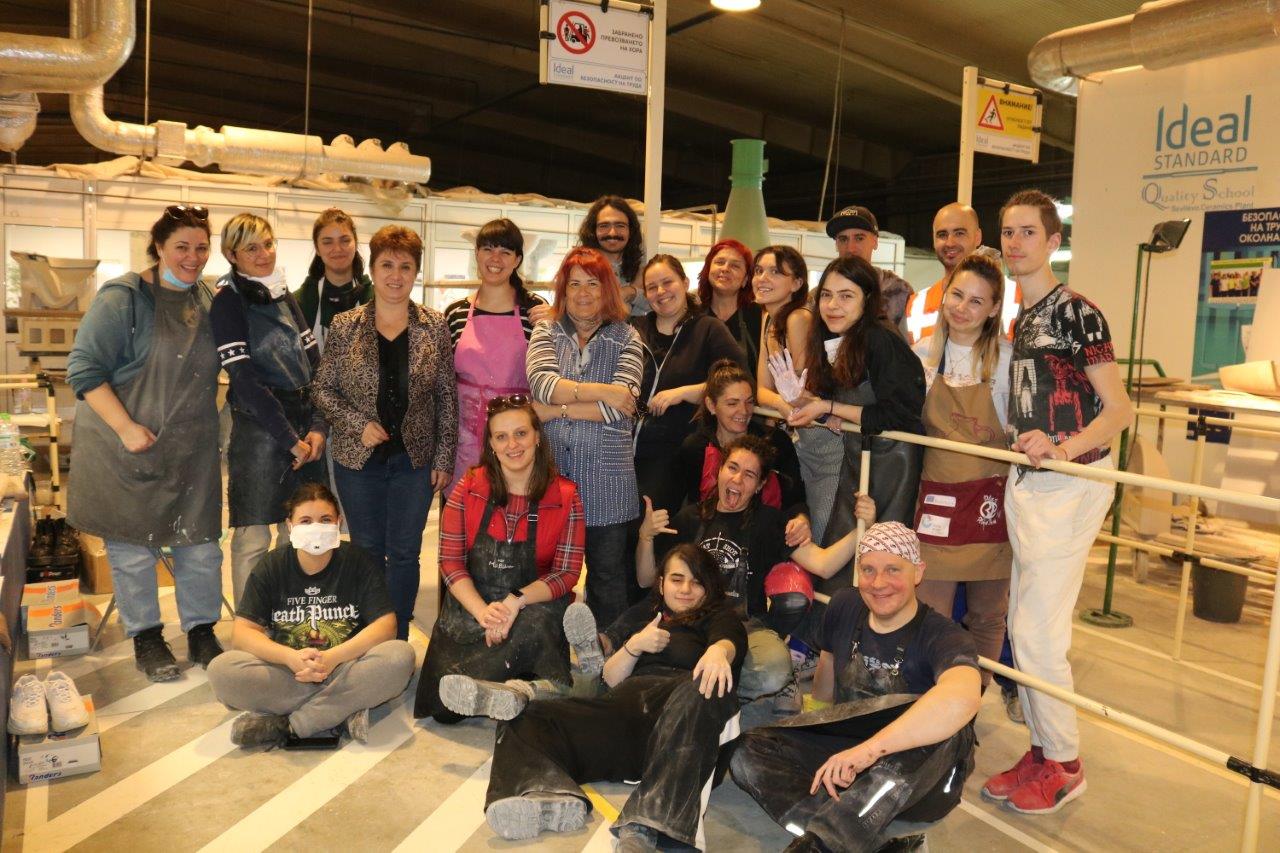 По време на стажа си студентите имаха възможност да се запознаят отблизо с производствените процеси при спазване на всички правила за безопасност и здраве, въведени във връзка с пандемията от COVID-19. Голямо впечатление на гостите направиха инсталираните в завода нови роботизирани клетки, както и нововъведените транспортиращи роботи, роботите за допълнителни операции и манипулатори за пренасяне на изделията. Димитър Петров, преподавател по технология на керамичното производство в Нов Български Университет, коментира методите за създаване на гипсови калъпи в завода и показа на студентите различни подходи за прехвърляне на изображения и създаване на отпечатък.