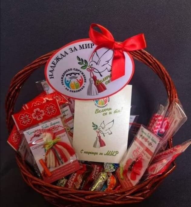 Освен мартеничките, всички получиха и сладка почерпка. Но най-трогателното в жеста на екипа на сдружението бе изработената от тях картичка, символизираща надеждата за мир.