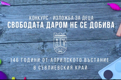 Изложбата-конкурс за детска рисунка „Свободата даром не се добива“ е едно от събитията, с които Община Севлиево ще отбележи 146-годишнината от избухването на Априлското въстание в нашия край. В нея могат да участват всички до 18 години, които обичат да рисуват, вълнуват се от историята и от героизма на предците си.