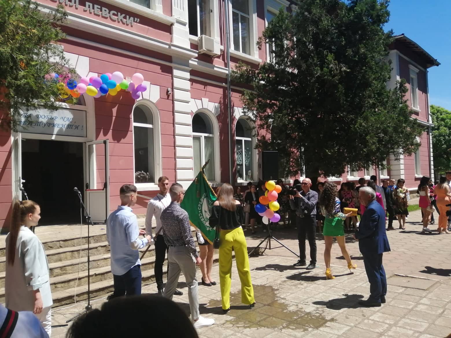 Дванадесетокласниците се простиха с училищното знаме и в знак на почит и признателност поднесоха цветя пред бюст-паметника на патрона на училището – Васил Левски. Накрая всички се хванаха на дълго българско хоро.