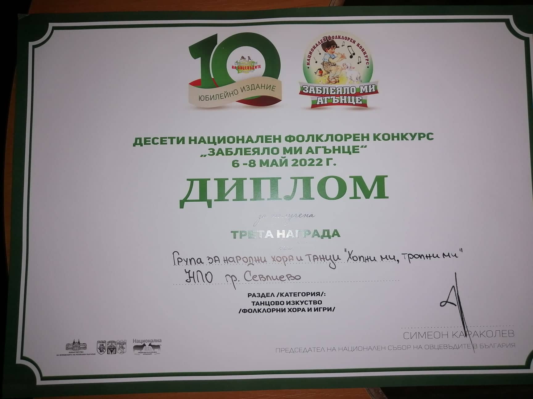 След своето участие групата получи поздравления от организатори и публика, а в навечерието на 24 май, пристигна и наградата. Дипломът и паричната награда донесоха радост и гордост на момичетата и момчетата от групата за народни хора и танци „Хопни ми, тропни ми“.