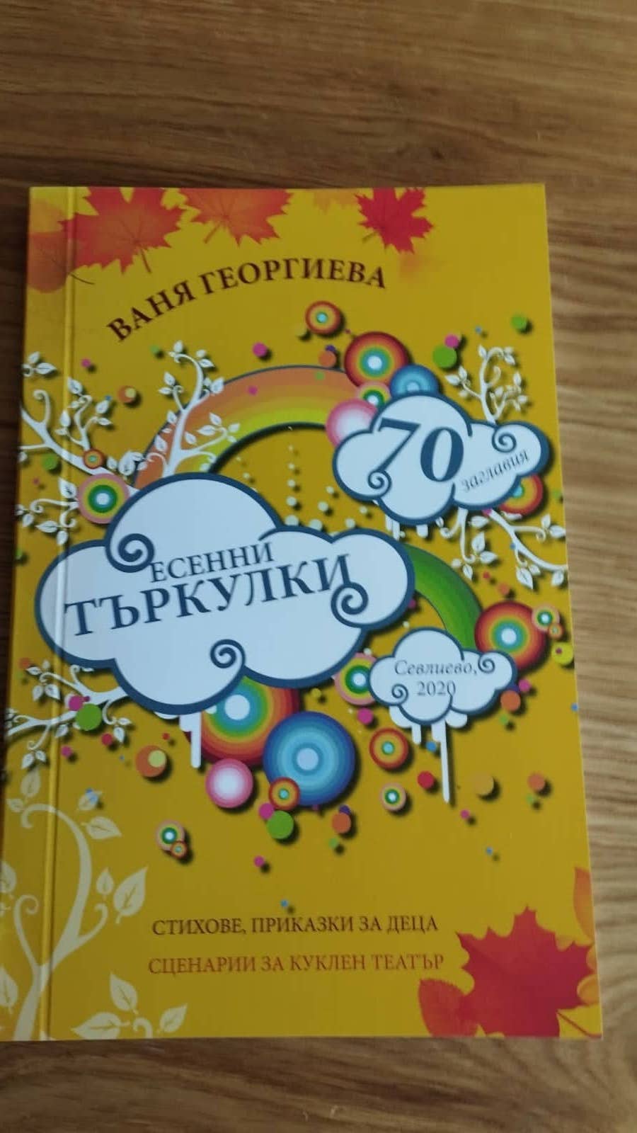 В книгата „Есенни търкулки“ има стихове за деца и тийнейджъри, сценарий за театрален спектакъл „Кравичката Божана“, поеми. Тя е 14-ата рожба на Ваня Георгиева. „Тази награда беше много неочаквана за мен. Изненадана съм и съм много щастлива“, сподели за в. „Росица“ поетесата и допълва: „Детският свят ми е близък и затова ми е много приятно да пиша за най-малките.