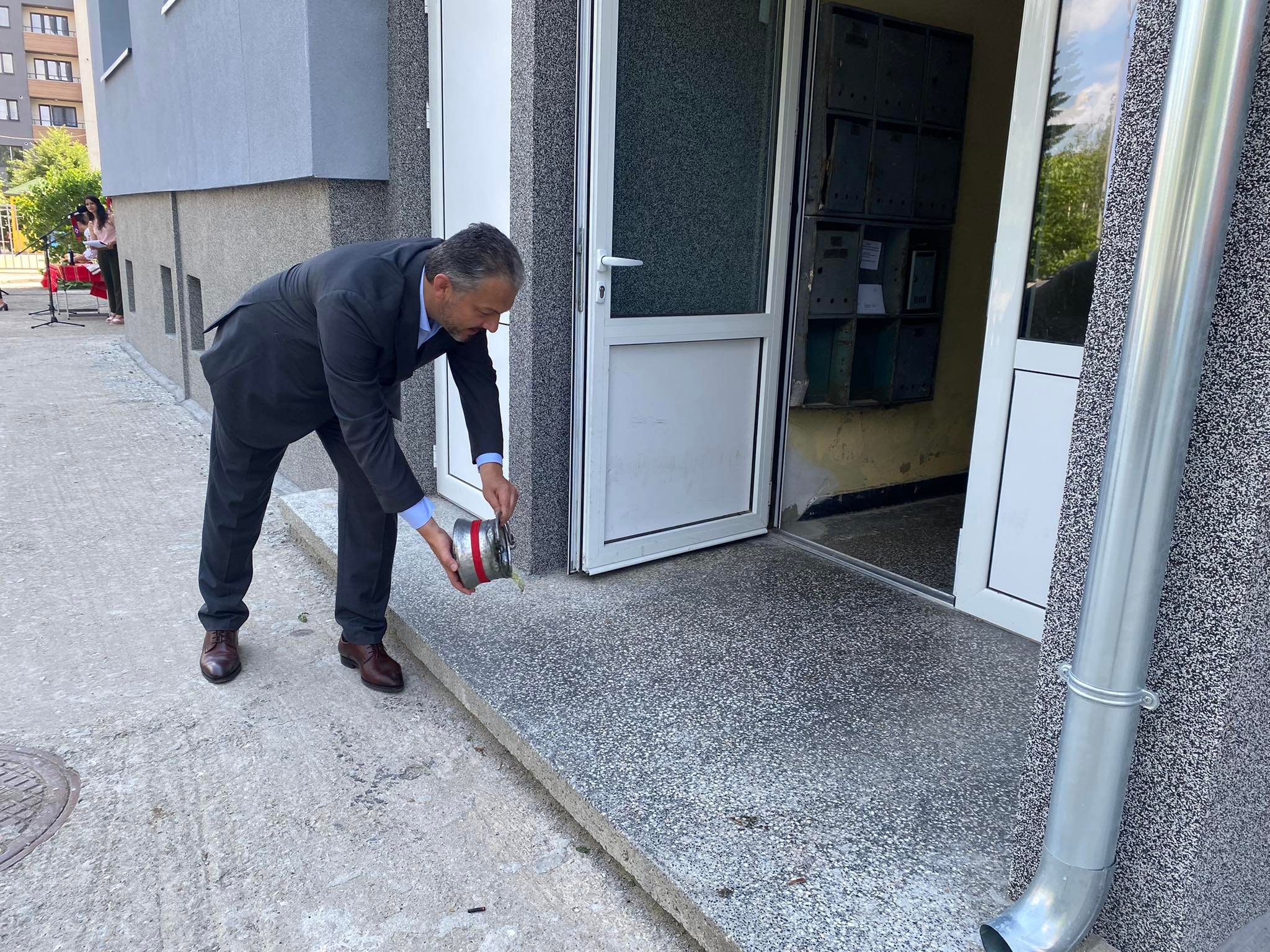 Кметът на община Севлиево д-р Иван Иванов и Николай Миндалов от „Еко Традекс Груп” АД официално прерязаха лентата на нови три жилищни блока, санирани по проект „Въвеждане на мерки за енергийна ефективност в многофамилни жилищни сгради в град Севлиево, на адрес: ул. „Стара планина“ №129, ул. „Хаджи Димитър“ №2 и ул.“Раковска“ №3 по договор № BG16RFOP001-2.003-0067-C01, финансиран по Оперативна програма „Региони в растеж” 2014-2020 г., съфинансирана от Европейския съюз чрез Европейския фонд за регионално развитие.