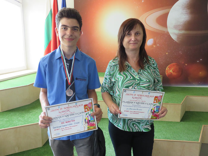 Светослав Събев, ученик от 10 „в“ клас в ПГМЕТ „Ген.Иван Бъчваров“-Севлиево завоюва трето място в IX Национален конкурс с международно участие „България в картини и слово“. Високата оценка той получи за своя видеоклип за крепостта „Хоталич“. Водеща е била мотивацията, този забележителен средновековен град край Севлиево, паметник на културата с национално значение, да достигне до повече хора. За достойното си представяне Светослав Събев бе удостоен с медал, грамота и предметна награда. Грамота за научно ръководство получи Ивелина Колева – старши учител по география и икономика, а наградите връчи г-жа Ани Андреева, Директор на ПГМЕТ „Ген. Иван Бъчваров“.