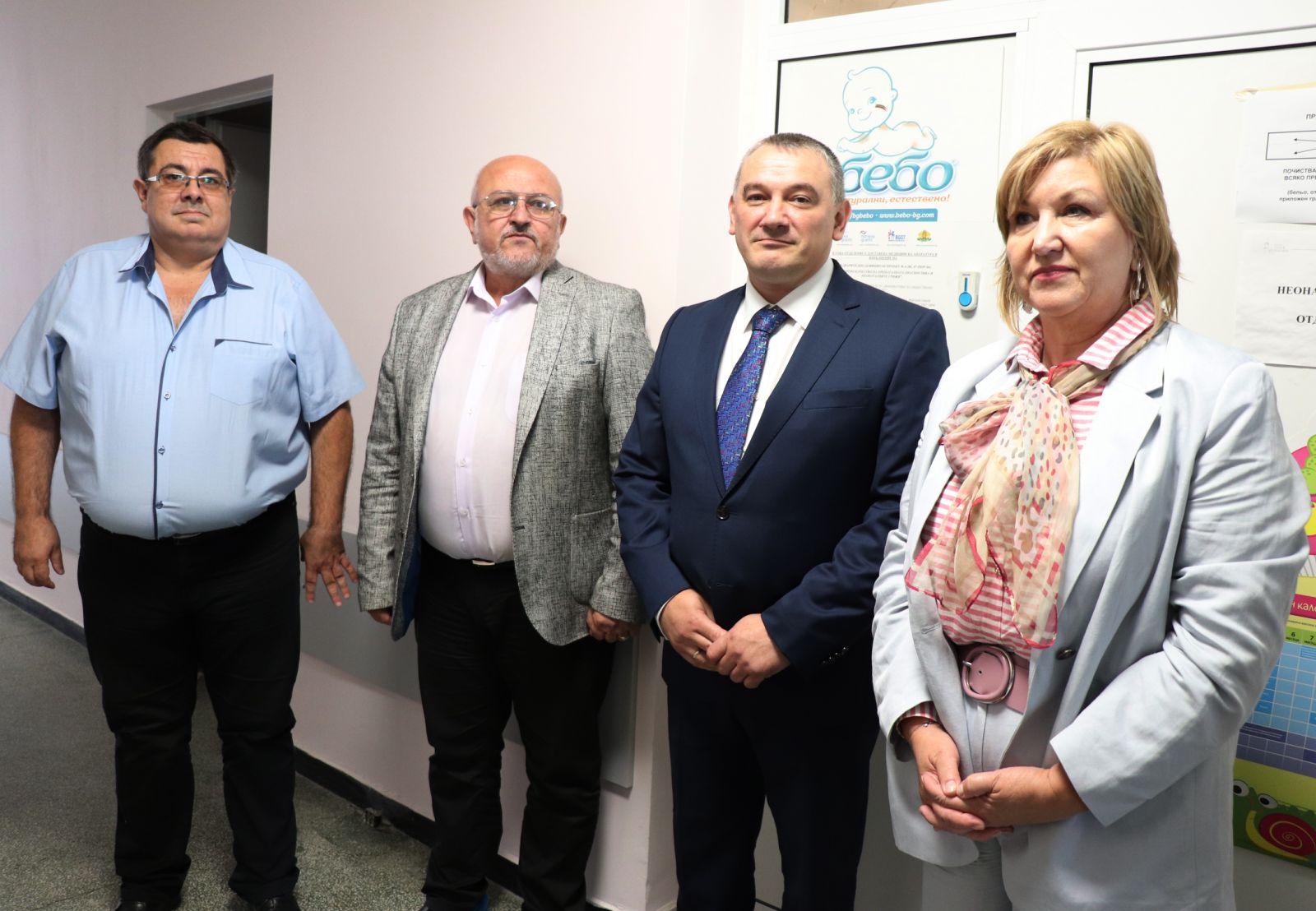 Д-р Ангел Анчев с гордост представи обновеното АГ отделение с думите: „Успяхме да направим едно отделение, което се равнява на най-добрите в страната. Условията са много добри и се надяваме все повече жени да избират да раждат при нас. Стаите са обновени и има възможност бебетата да са при майките, което досега не беше така.“