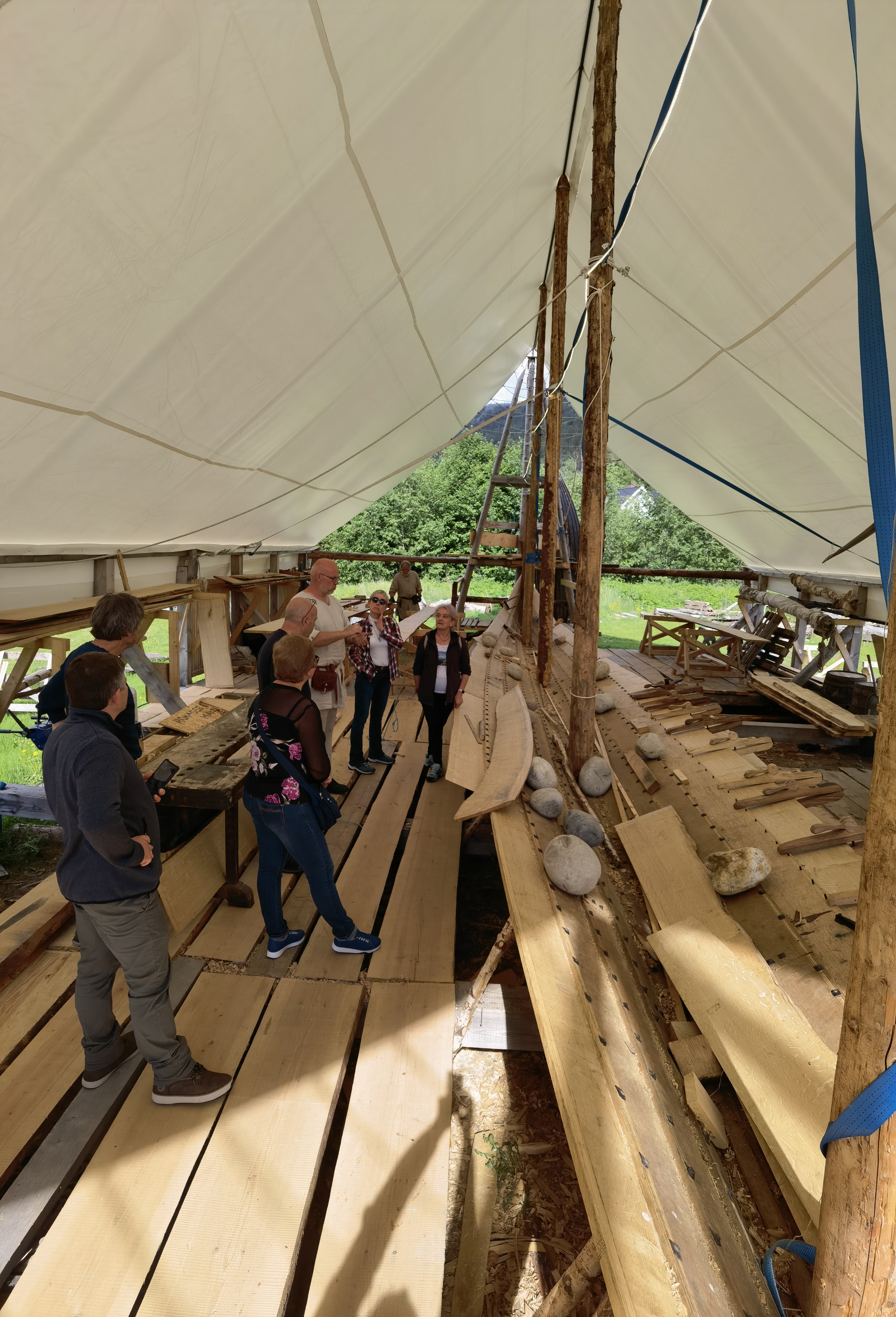Запознахме се с членовете на клуб „Викинги“, който изучава и разказва историите на викингите в Норвегия. Но това, което видяхме, изключително ни порази – хора от 40 до 80 и нагоре години, облечени във викингски дрехи, след работно време или в свободното си време, се събират всяка седмица по два пъти, за да построят един истински кораб от времето на викингите. Планирали са да го завършат през 2024 година. Започнали са преди три години. Най-напред са направили много точен проект, а след това са намерили финансова подкрепа от различни източници – община, банки, частни спонсори и много сериозно работят.