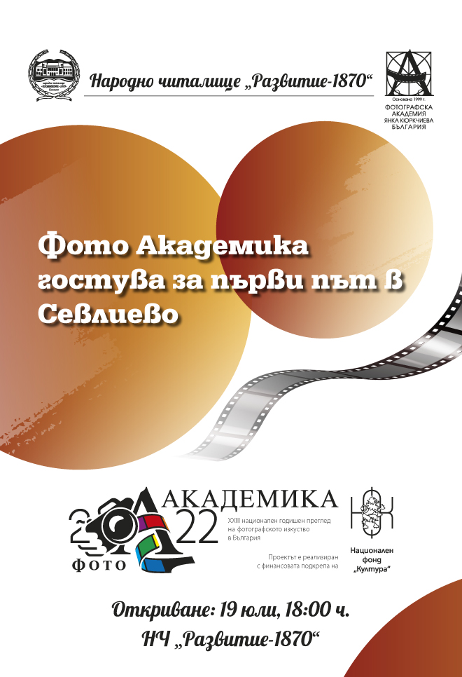 „Фото Академика 2022” – националният ежегоден годишен преглед на фотографското изкуство в България, гостува за първи път в Севлиево. Откриването на изложбата с финалистите от 23-то поредно издание на форума ще се състои на 19 юли, от 18:00 ч., в Народно читалище „Развитие-1870”. Председателят на Националното сдружение фотографска академия „Янка Кюркчиева” Юрий Трейман ще е специален гост на събитието. За първи път в историята на „Фото Академика”, след официалната изложба с откриването и награждаването, експозицията гостува в друг град в страната.