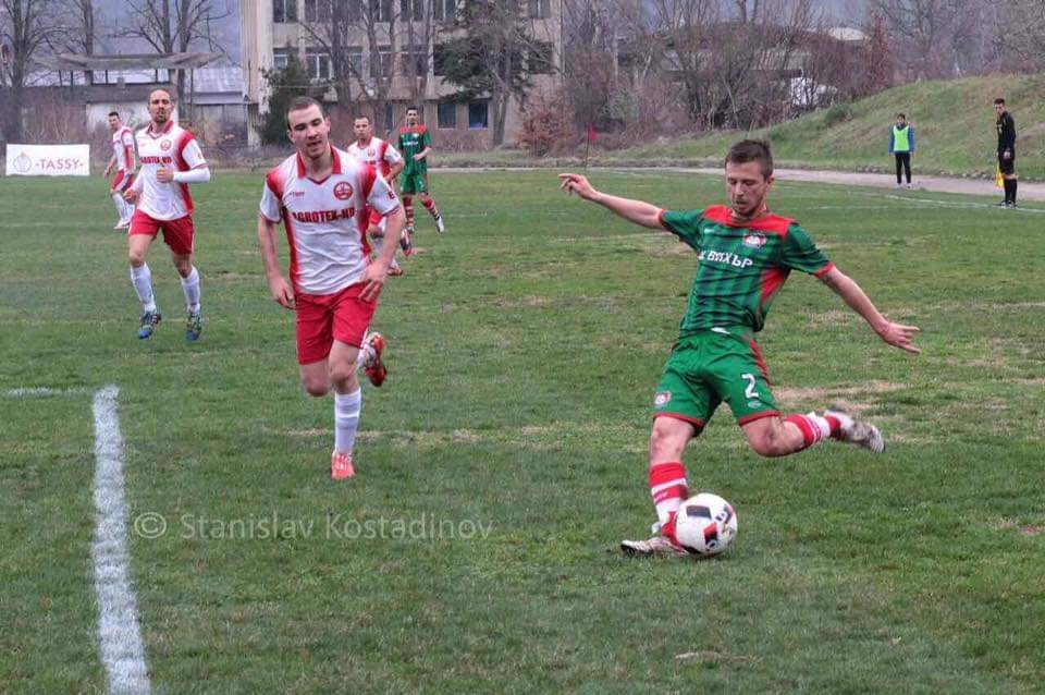Домакините започнаха обещаващо. Добрин Петров стреля от 20 метра, свищовският страж изби, но вторият опит на нападателя беше успешен – 1:0 в 5-ата минута. Двубоят на Петров с вратаря на „студентите“ продължи, но следващите два директни спора завършиха без попадение. Същото се случи и когато Атанас Георгиев излезе на голова позиция. Александър Миланов изравни в 28 минута, след асистенция на Георги Йорданов.
