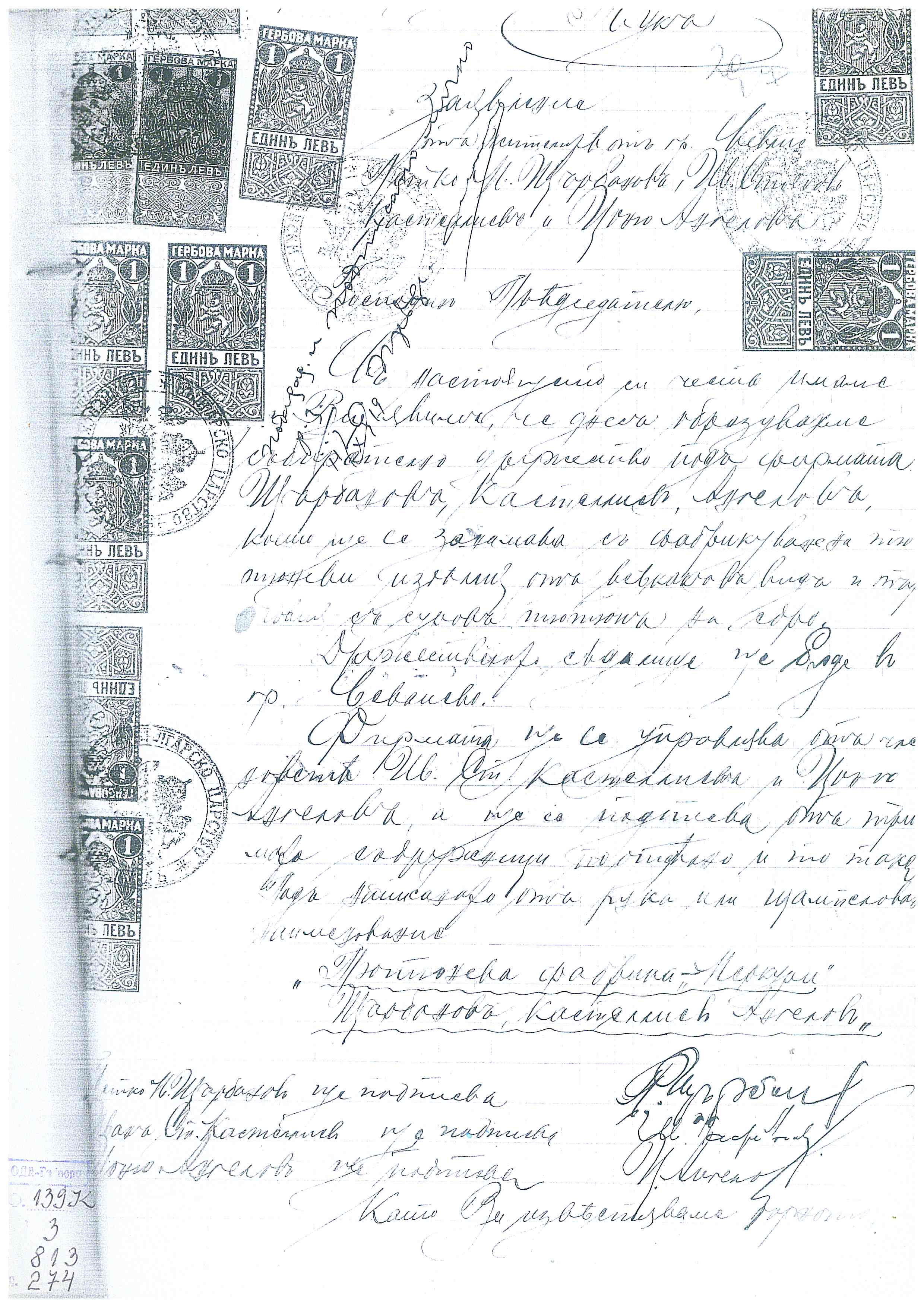 Окръжният инженер с предписание от 10.11.1923 година забранил строежа, който нарушава закона за благоустройството, но фирмата на Щърбанов, Кастелиев и Ангелов, продължили строежа на фабриката, без разрешение на техническите власти.”