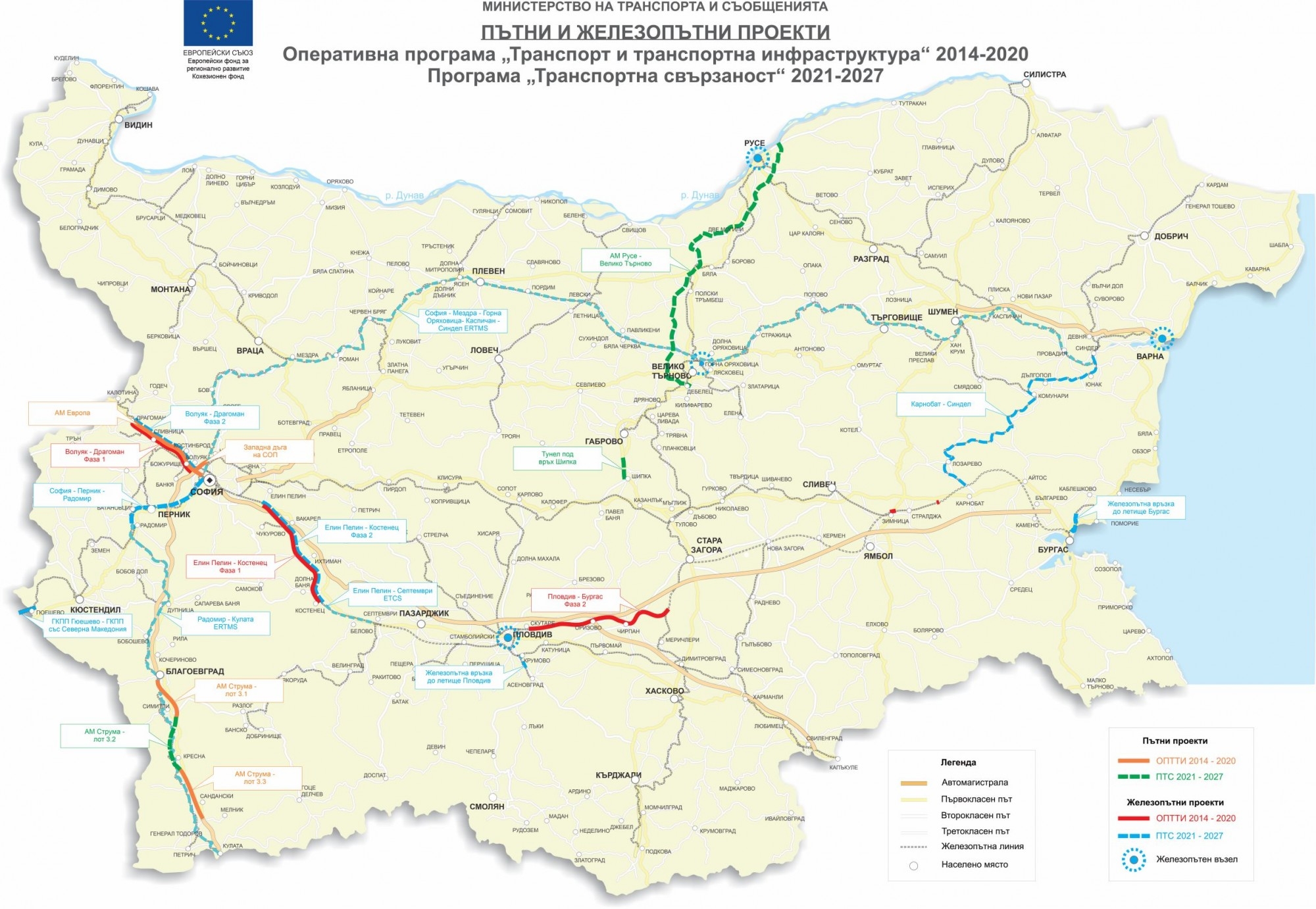 Европейската комисия одобри Програма „Транспортна свързаност“ 2021-2027 г. и отпусна на България 1,6 милиарда евро – една от най-големите суми за българските програми за сближаване през този програмен период. Финансирането е за проектите тунел под връх Шипка, строителство на магистралата Русе-Велико Търново, на част от магистрала „Струма”, модернизация на железопътни участъци, разширяване на дунавски пристанища и др. Новината беше обявена на 3 октомври т. г. от пресцентъра на Оперативна програма „Транспорт и транспортна инфраструктура”.