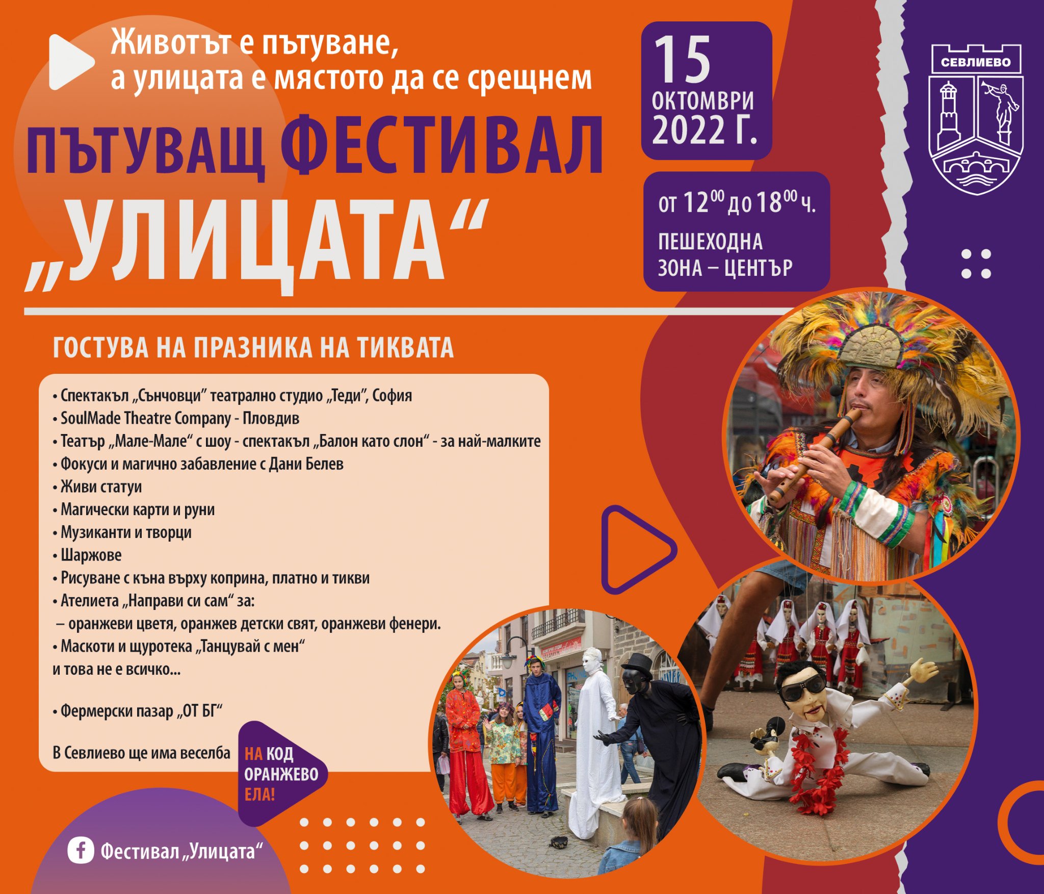Пътуващ фестивал „Улицата“ и тази година ще забавлява севлиевци и гостите на града по време на традиционния „Празник на тиквата“, с който Севлиево се прослави по света и у нас.