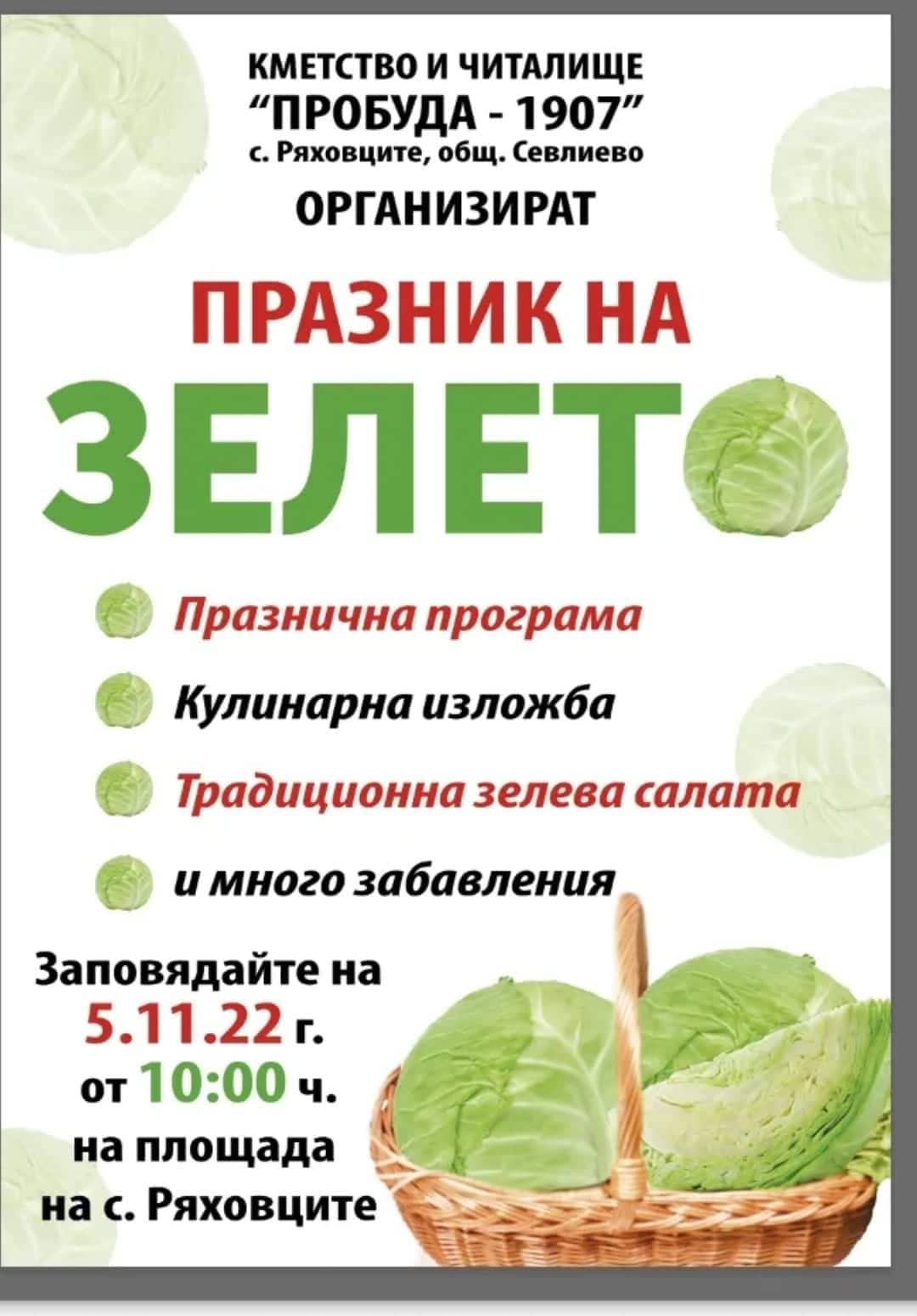 Зелевата фиеста ще събере мало и голямо, ряховчани и гости на селото утре – 5 ноември. Мястото е мегданът, а началото е точно в 10:00 ч. Организаторите на празника са предвидили и приготвили вкусни зелеви гозби и салати, специалитети от близо и далеч, ще има кулинарна изложба, богата празнична програма и много забавления за всички.