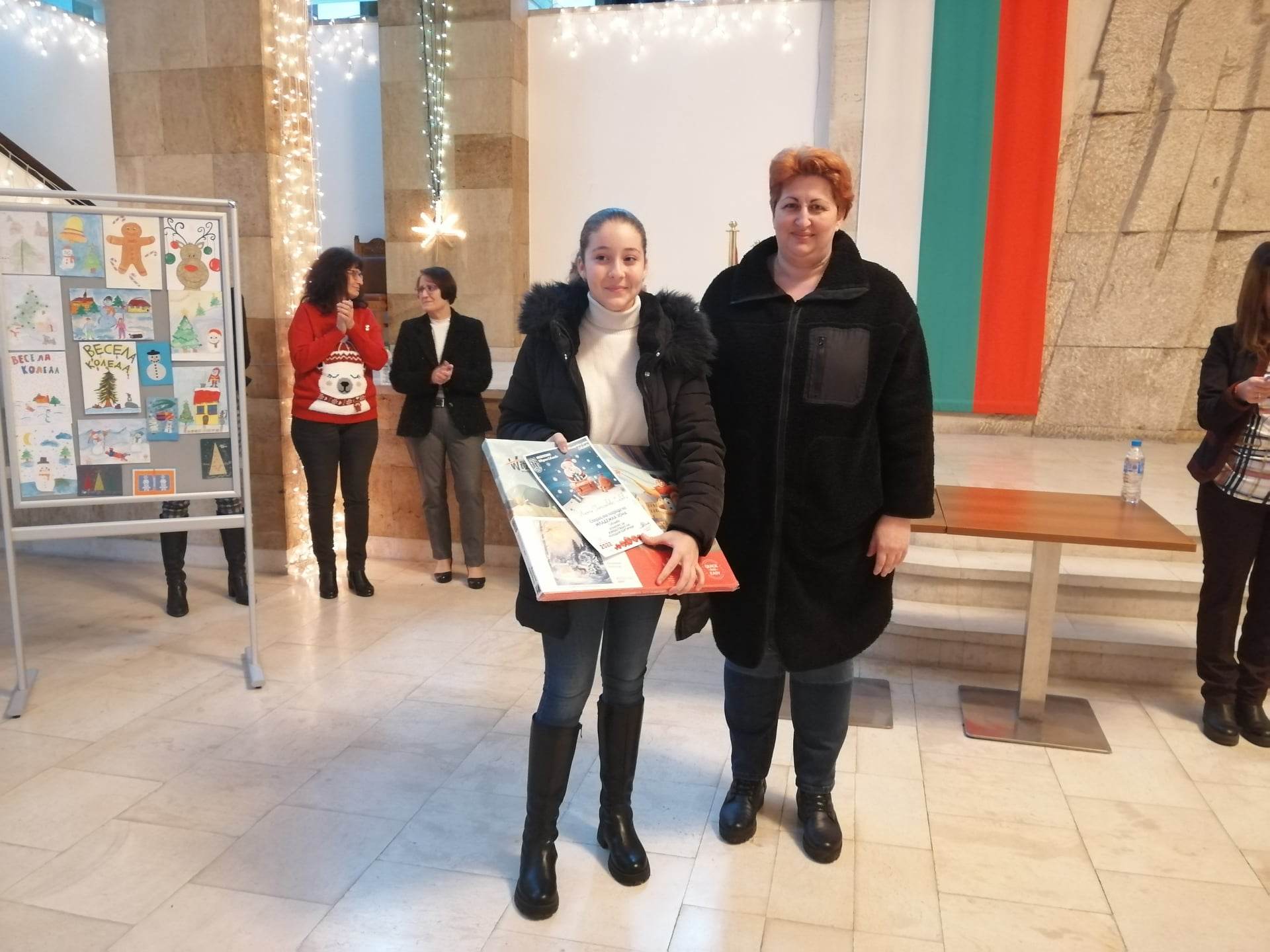 Секретарят на Местна комисия за борба срещу противообществените прояви на малолетните и непълнолетните – Ваня Русчева, връчи специалната награда на комисията. Тя бе присъдена на 16-годишната Кремена Колева. Коледната картичка на малката художничка вече е отпечатана и пътува като празничен поздрав към партньорите, с които работи комисията.
