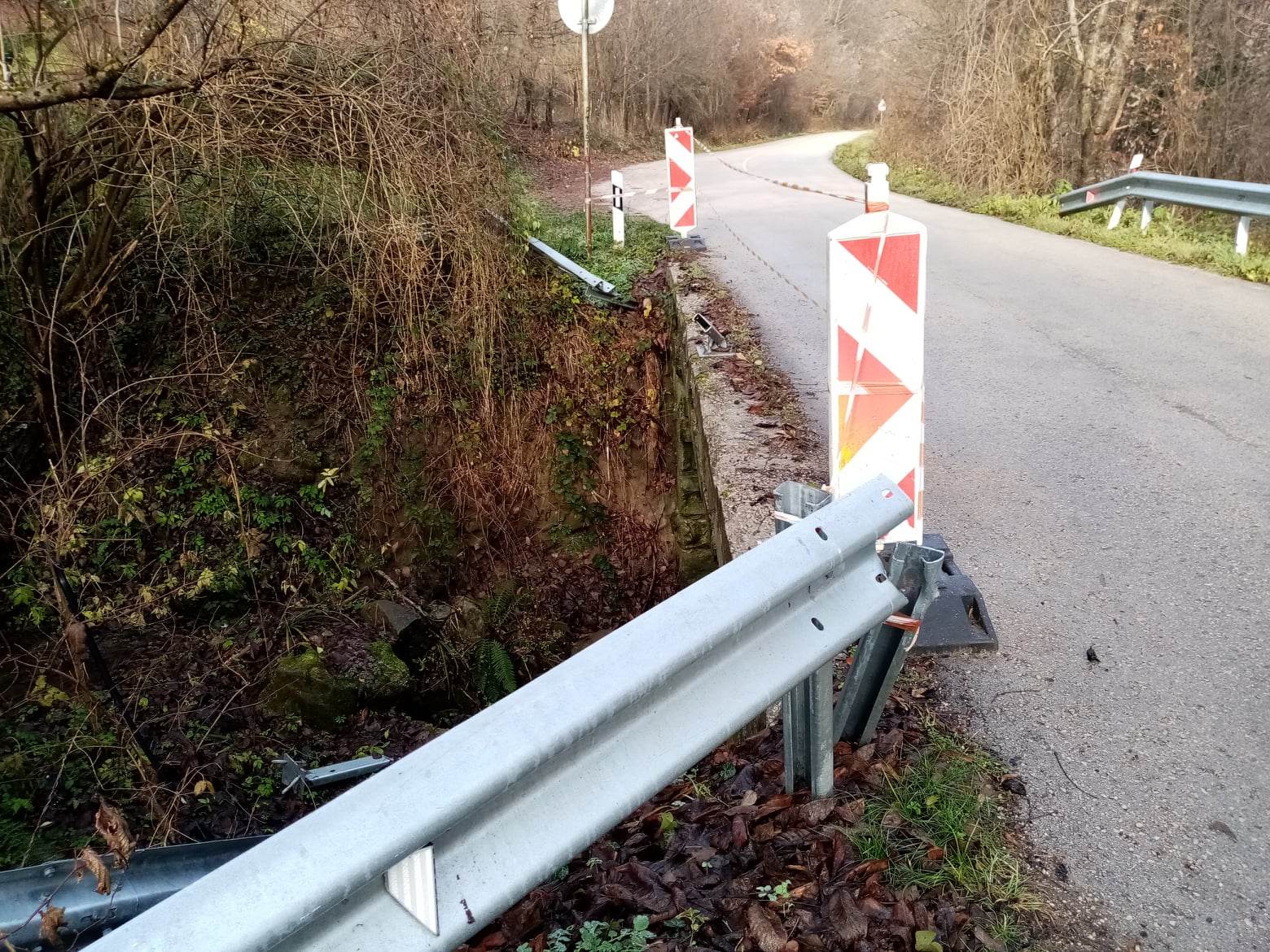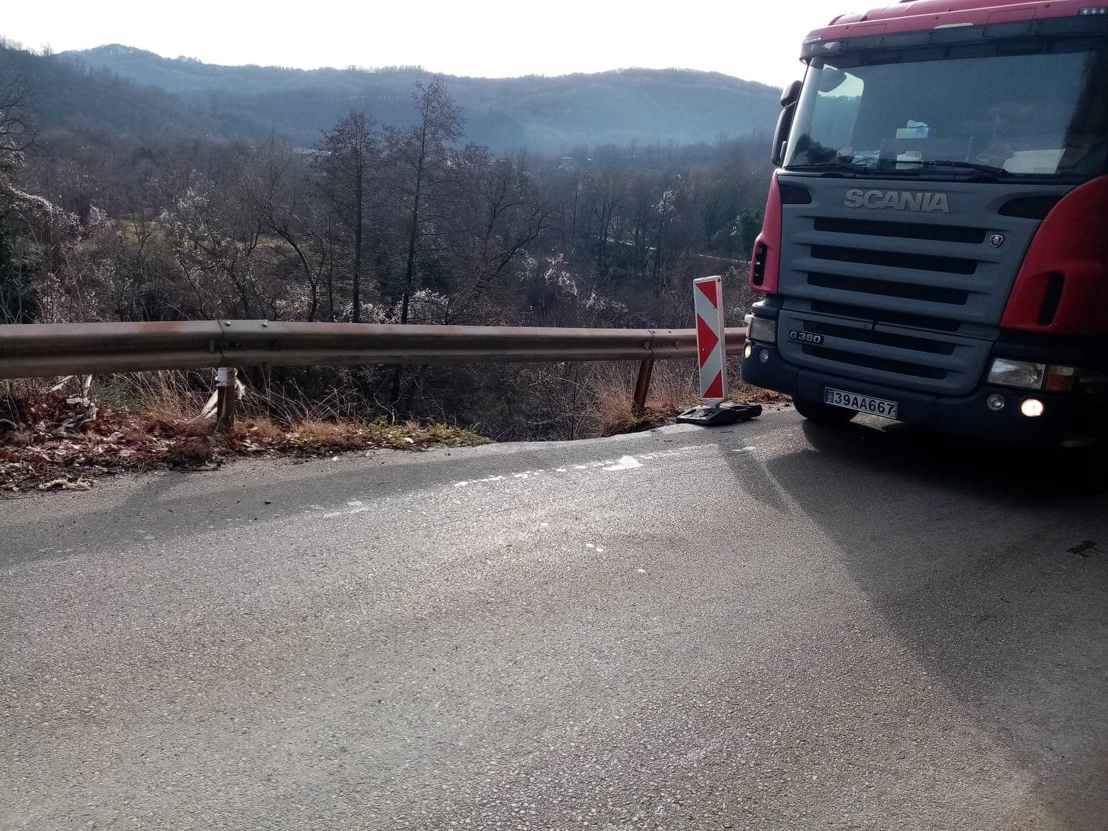 Първият опасен участък, възникнал от пътно транспортно произшествие /ПТП/, видяхме на пътя между махалите Карамичевци и Попска. Явно лекият автомобил и водачът в него са се разминали без сериозни травми, благодарение на мантинелата, която личеше, че е била нова, макар и вече доста повредена. Но при следващ инцидент, едва ли водачите ще имат този късмет, защото под мантинелата има дере, макар и не толкова дълбоко.