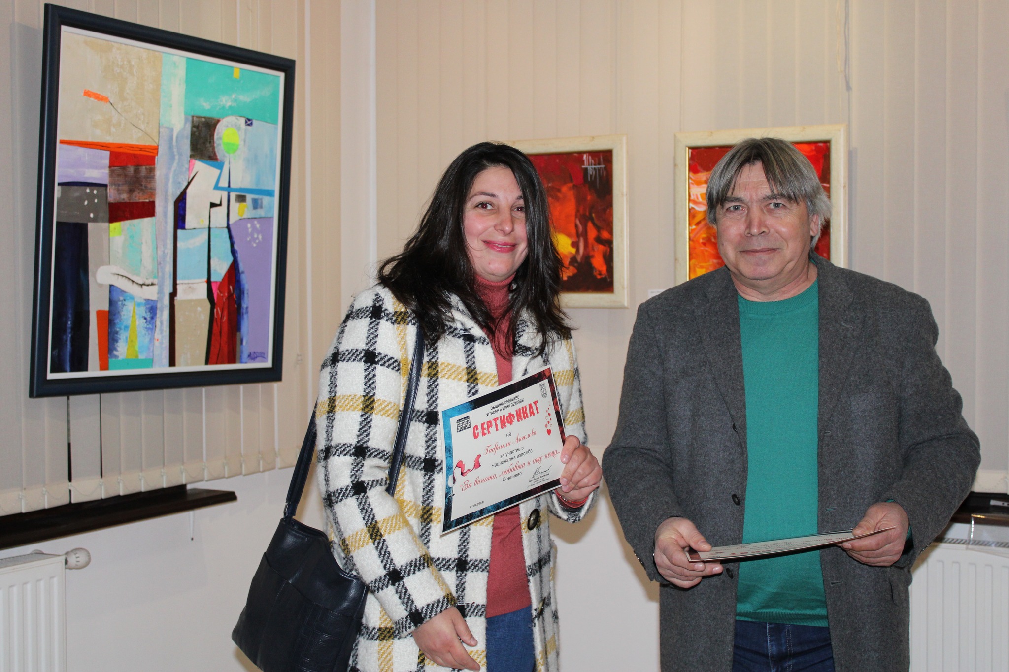 Екипът на Градската галерия поздрави победителите и пожела на всички много творчески успехи. След откриването на изложбата всички посрещнаха месеца на любовта с чаша вино в ръка, в духа на традицията.