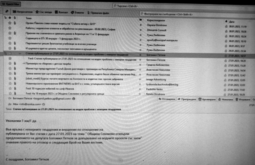 Истината е, че г-н Петков изпрати два имейла на електронната поща на редакцията на вестника на 27 януари 2023 г. Първият в 16.57 ч, а вторият – в 18.50 ч. в които съобщава, че иска право на отговор в следващия брой на вестника.