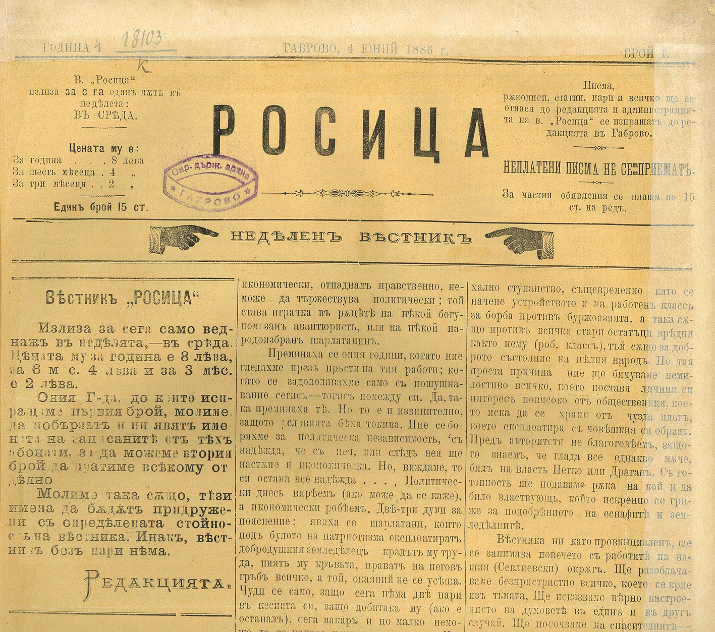 Но най-важният момент е тяхната рождена дата. А за в.”Росица” тя 4 юни 1886 г. И днес се навършват 132 години от създаването му. Годишнина, достойна за уважение, защото е заслуга на хората, които са работили в него – редактори, журналисти, краеведи, дописници, печатари, на будните севлиевци, които са имали нужда от своя вестник, защото са му вярвали.