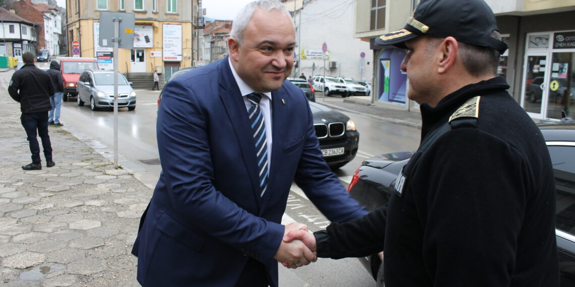 Малко преди 10 часа черният му „Мерцедес” спря пред сградата на областната дирекция в Габрово. Придружаваха го заместниците му – Венцислав Катинов и Моника Димитрова-Бийчър. Пред входа в униформа го посрещна директорът на ОД МВР Габрово ст. комисар Цветомир Цонков, както и много журналисти.