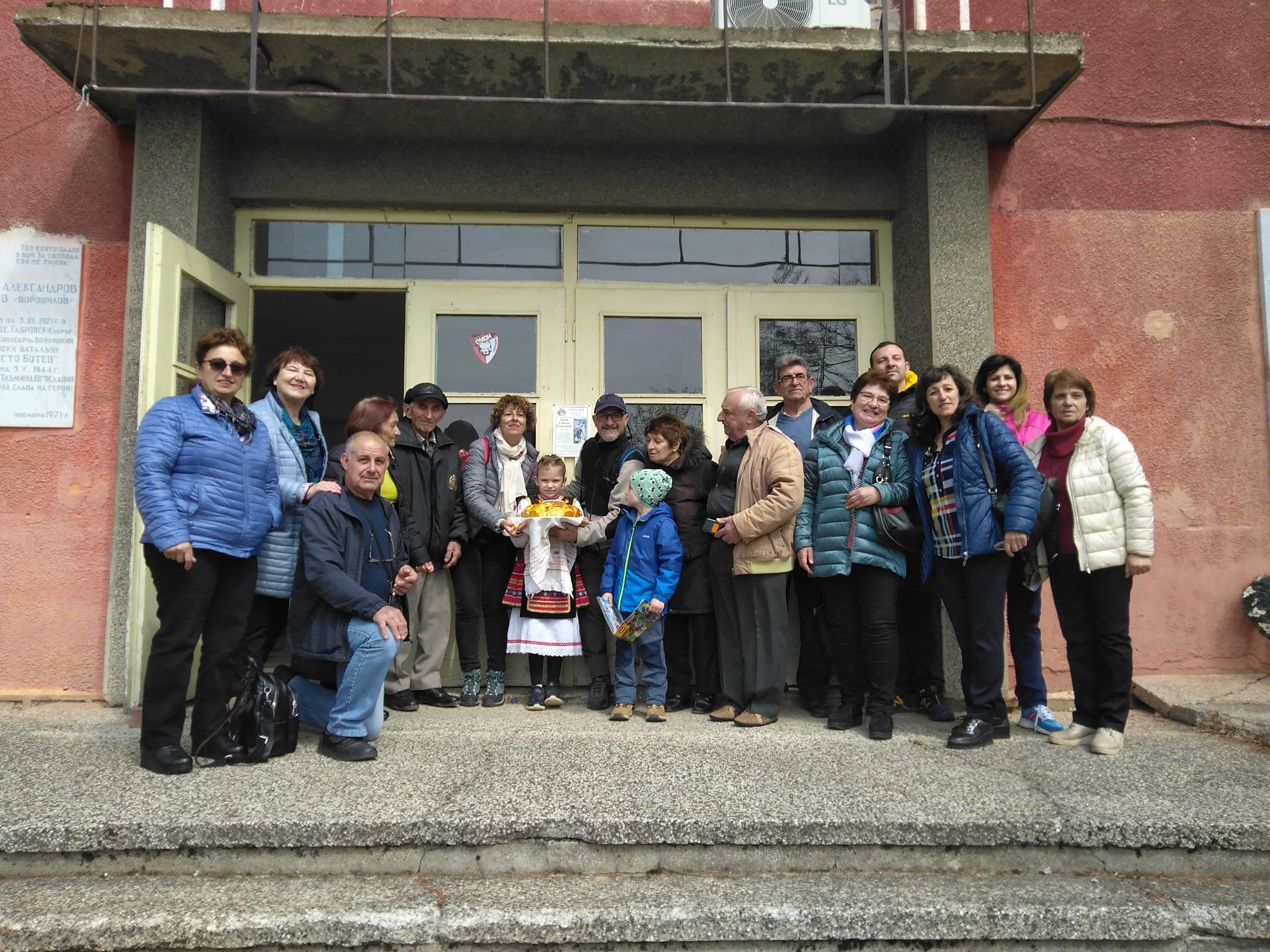 Гостите от Аржентина с българските роднини на Соня пред читалището в Градище