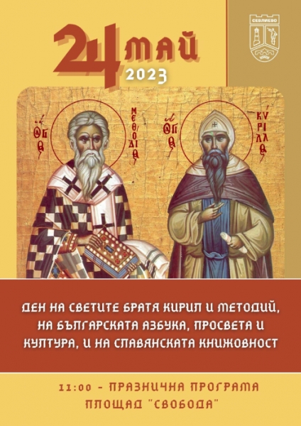 С празнична програма, организирана от Община Севлиево, ще бъде отбелязан 24 май – Денят на светите братя Кирил и Методий, на българската азбука, българската просвета и култура, и на славянската писменост.