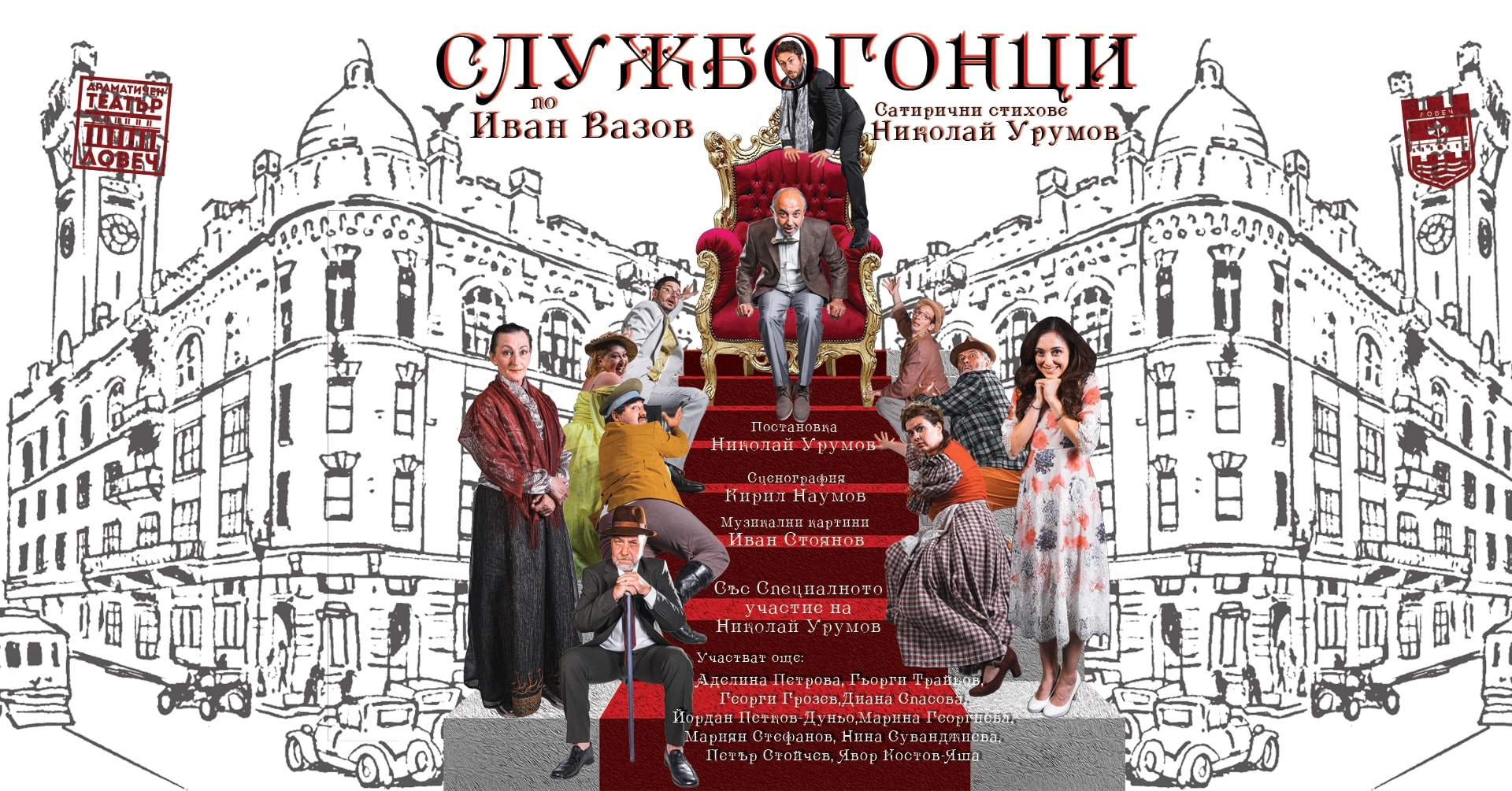 Ловешкият драматичен театър гостува в Севлиево с един от най-новите си спектакли „Службогонци”. Постановката по прочутата комедия на Иван Вазов е дело на Николай Урумов, когото ще видим и на сцената – в ролята на Станчо Квасников. Комедията ще се играе на 30 май, от 19:00 ч., на сцената на Народно читалище „Развитие-1870”.