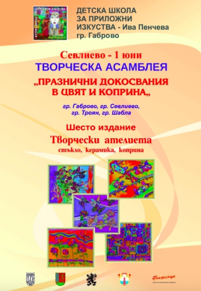 Асамблеята „Празнични докосвания в цвят и коприна“ гостува в Севлиево за Деня на детето – 1 юни. Събитието предлага на публиката рисуване върху коприна, керамика, стъкло и графичната техника на Ива Пенчева. Ателиетата на асамблеята се провеждат в две части – сутринта гостуват на Центъра за деца със специални потребности, а следобед е част от празничната програма на „Лятно театро“ в града.