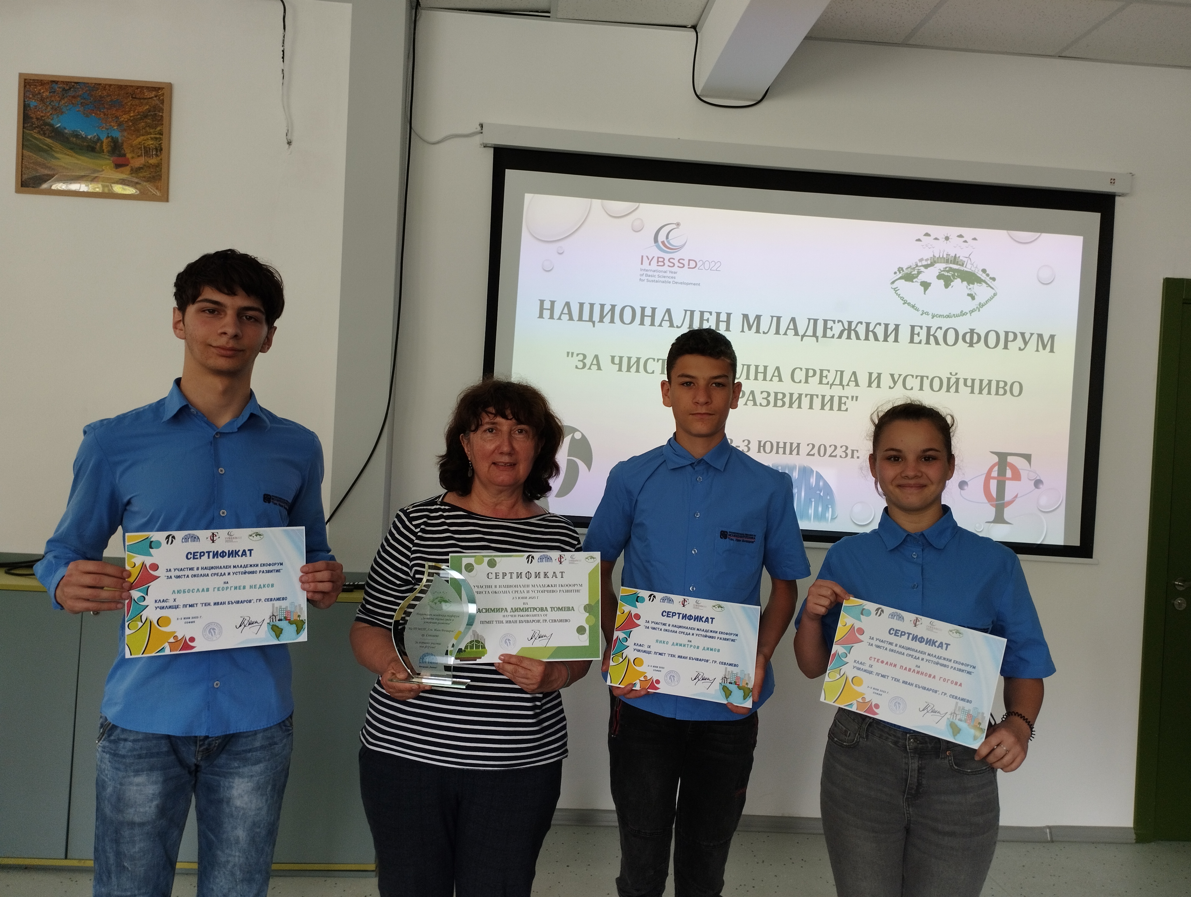 Ученици от ПГМЕТ „Ген. Иван Бъчваров“ взеха участие в Първия Национален младежки екофорум, който се проведе в София на 2-3 юни. Форумът беше посветен на Световния ден за опазване на околната среда – 5 юни и организиран от Съюза на физиците, СПГЕ „Джон Атанасов“ и с подкрепата на фондация „Еврика“.