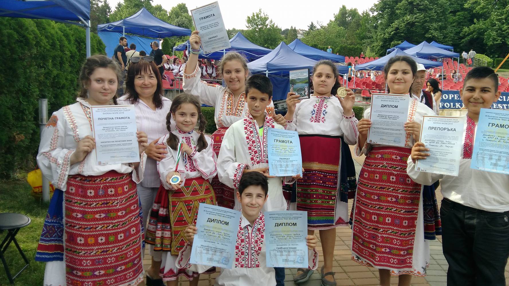 Достойно представяне направиха децата от Драматично-кукления театър при ЦПЛР – детски комплекс „Йовко Йовков“ на ХХІІ старопланински събор „Балкан фолк“ и ІХ национален шампионат по фолклор „Евро фолк 2018“. Във форума, който се проведе на сцената на летния театър в парк „Марно поле“ във Велико Търново, възпитаниците на Калинка Иванова представиха обичая „Благовец“, участвайки в раздела за обичаи.
