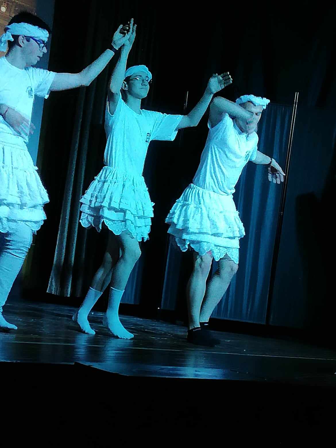 С много„грация“ Георги Георгиев от 11в, Цветомир Колев от 9а и Мартин Конов от 10а танцуваха балет и кан-кан, което предизвика смях и бурни аплодисменти в залата.Имаше надиграване между рок и рап, предсказания и най-различни моменти от тинейджърския живот, пресъздадени с много смях.