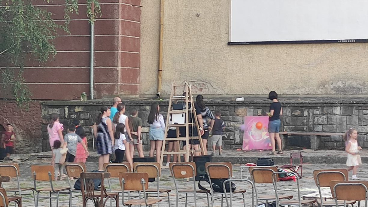 По традиция лятното кино се съпровожда винаги от импровизиран детски празник. Децата са свободни да правят каквото искат на площада, имат тебешири за рисуване, летящи самолети. Тази година имаше и игра с балони. На свечеряване започна и детското караоке, децата рецитираха стихотворения. Настъпващата тъмнина ги правеше смели и уверени и те пристъпваха към микрофона без подкана от възрастните. Патент на лятното кино в Ловнидол станаха и светещите гривни, които децата с удоволствие носят в тъмнината.