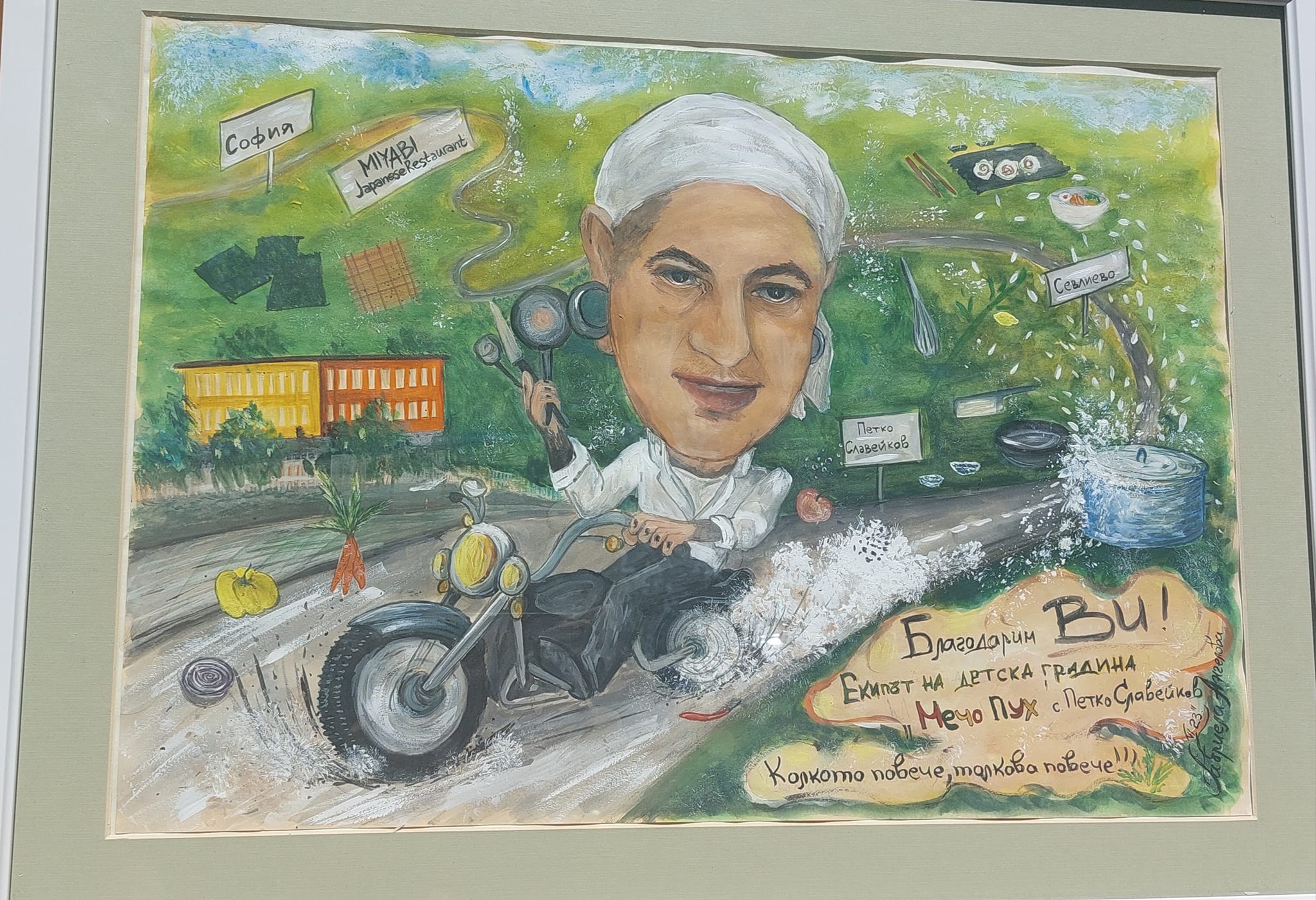 Наскоро дворът на ДГ „Мечо Пух“, с. Петко Славейково се превърна в кулинарна “арена“. Под зоркия поглед на шеф Петър Михалчев, малчуганите от четирите бази на градината и техните преподаватели приготвиха традиционни ястия от българската, италианската, американската и арабската кухня.