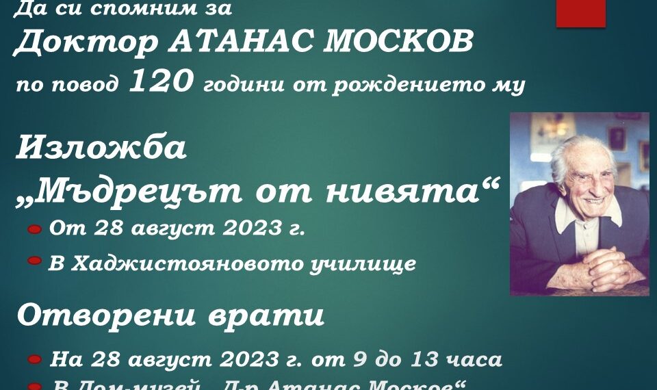 „Време е раят на земята“ е заглавие на една от книгите на Атанас Москов. В това кратко изречение той вярва и към това се стреми през целия си живот с цялата мощ на ума си и безкрайната си доброта и обич към хората. Докторът по международно право, „волята, интелекта и гордостта на партията”, както го нарича Петър Дертлиев, е роден преди 120 години в Севлиево и умира на 28 януари 1995 година в родния си град. Домът на почетния гражданин днес е Дом – музей „Доктор Атанас Москов”, поддържан от Историческия музей в града. През 1903 г., когато се ражда Атанас Москов, в Севлиево има изградена силна и влиятелна организация на БСДП, в която водещи фигури са по-големите му братя и близкият на семейството Андрея Конов. В гимназиалните класове Москов вече е основател и председател на младежката социалдемократична група „Жан Жорес”. Това довежда до първия му сблъсък с официалната власт, както и първото изключване от гимназията, което далеч няма да бъде последно.