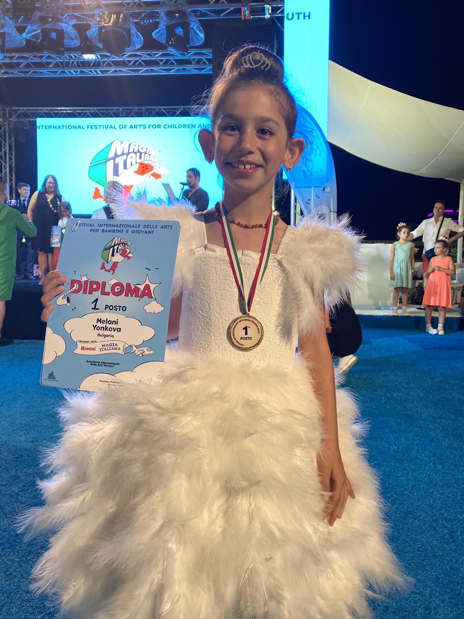 Мелани Йонкова успя да впечатли журито на Международния фестивал на изкуствата ,,Magia Italiana”в Римини, Италия. Талантливото габровче участва по покана на г-жа Снежана Полихронова и Димитър Кърнолски основатели и ръководители на АРТ –Център ,, Кърнолски“, както и създате-ли и организатори на фестивали в Италия. Мелани спечели първа награда в първа възрастова група с песните ,,Once upon a December” от филма ,,Анастасия“ и ,,Към незнаен свят“ из анимационния филм ,, Замръзналото кралство 2“. Мелани Йонкова се завърна с трета награда и от Международния арт фестивал ,,Karnolsky Summer Camp – 2023” в Слънчев бряг. Поканата за фестивала тя получи през месец март на Националния конкурс на АРТ Център ,,Кърнолски“, ,,Път към славата“ в София.