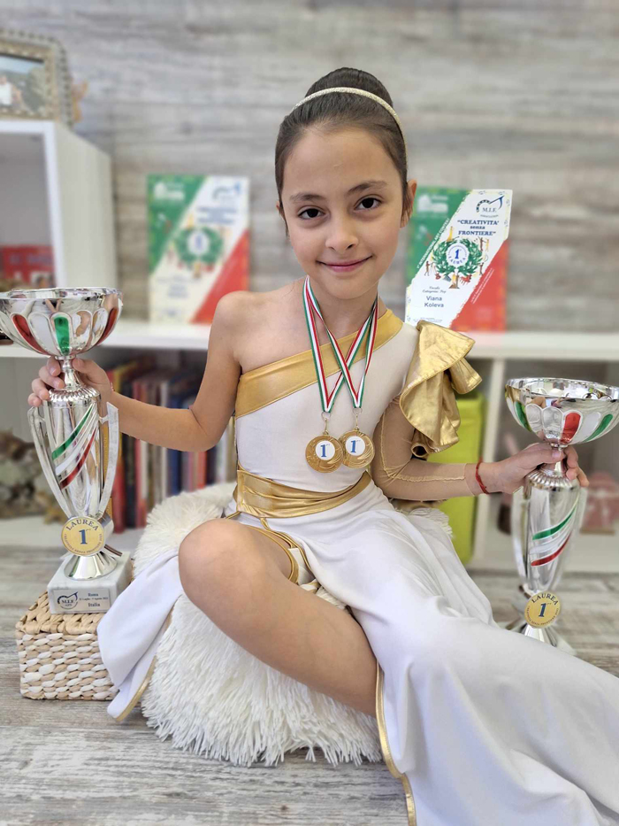 Малката гласовита севлиевка, с вокален педагог Ценка Горалова се представи блестящо във втора възрастова група с песните ,,Арлекино“ из репертоара на Алла Пугачова и популярния джаз стандарт ,,It don‘t mean a thing”. Tя спечели две първи награди, дипломи и огромни купи в 2 направления, както и големите аплодисменти и поздравления за емоционалното си присъствие на сцената на театър ,,Гионе“ в Рим. Организаторите на фестивала се бяха погрижили да съчетаят конкурсните изяви на децата с туристически екскурзии във вечния град с организиран транспорт и екскурзовод.