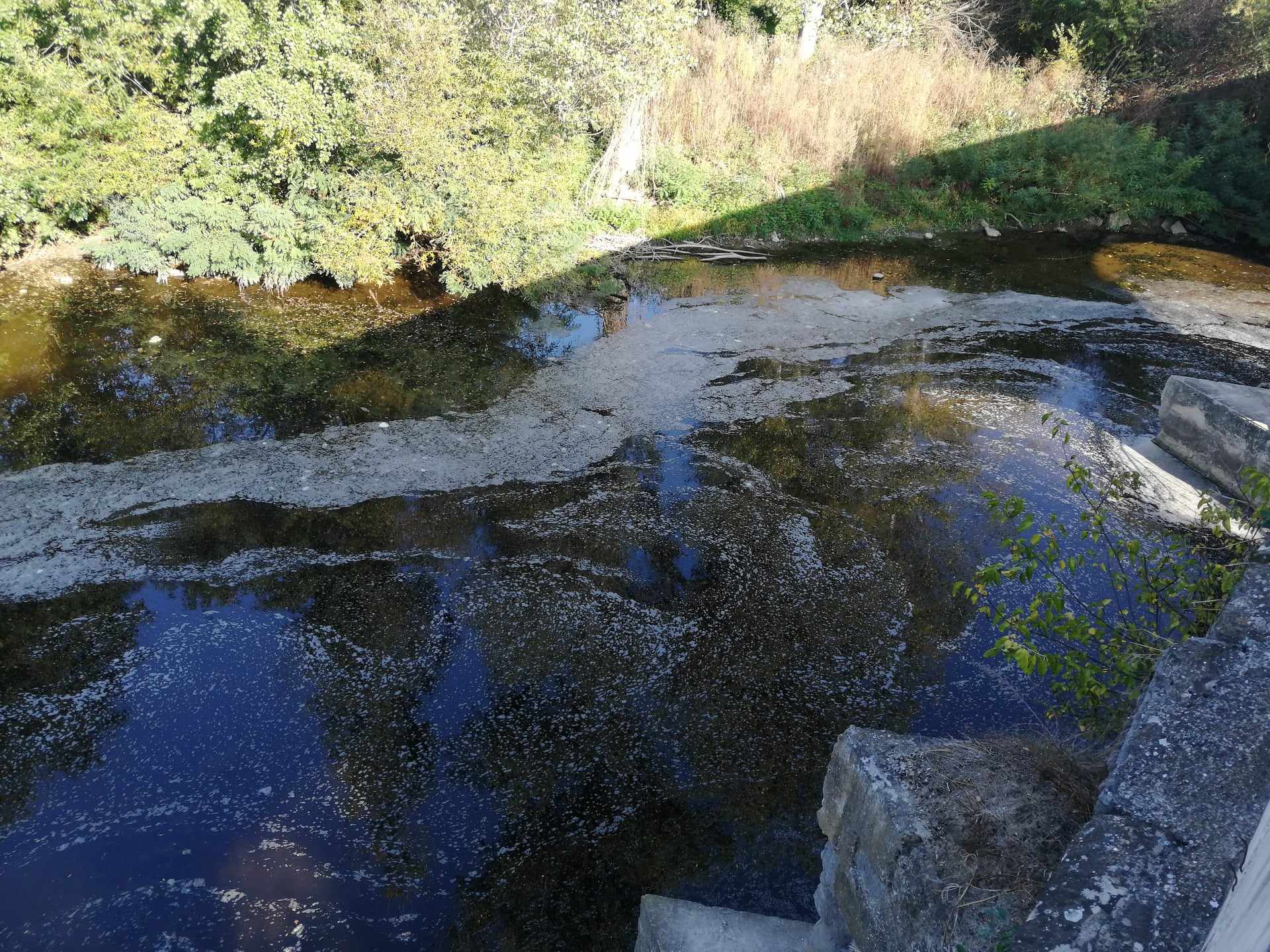 В сряда сутрин водата на река Видима, в местността Чакала, побеля. За това сигнализираха в редакцията на в. „Росица“ рибари. Наша проверка на място установи, че на повърхността на водата плуват бяло-жълти мазни отпадъци, а над нея се носи меко казано неприятна миризма.